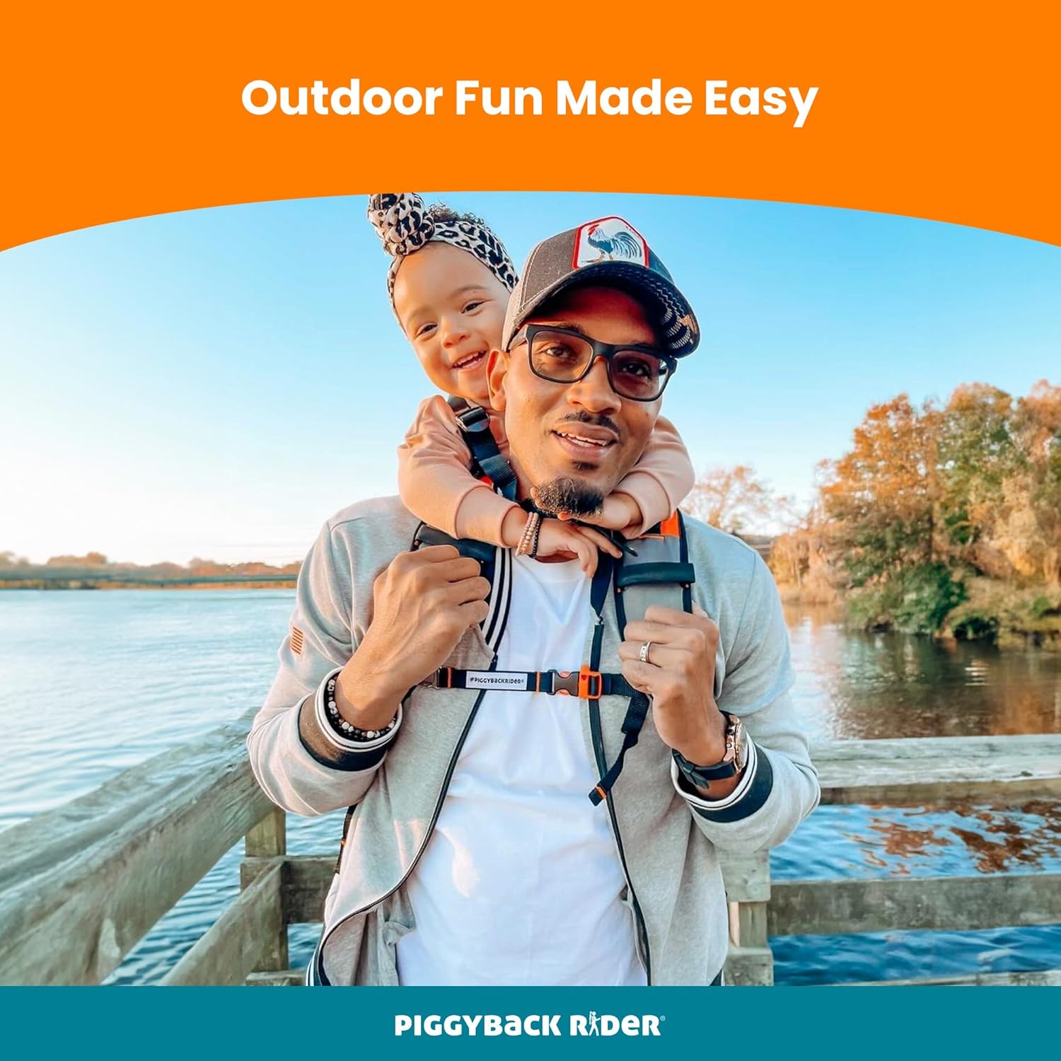 Supports a child 2+ years and up to 50 lbs. Designed for toddlers and older children, the Piggyback Rider, is a compact, lightweight, sturdy standing child carrier. Feel safe and secure with our upgraded adult carrier with 2 handles and Child Safety Harness which is included. One of the top benefits is your child’s hands are off your face and hair and securely standing firmly on a non-skid bar. The sturdy, unisex design functions like a standard backpack, distributing the child’s weight at your core enabling you to walk standing straight up in a natural posture with your hands free. Dad Invented, Mom Approved, parents and kids love the activities and fun while actively going from one place to another with the Piggyback Rider SCOUT child carrier. Made of high-quality climbing components and engineered for strength and safety, it weighs less than 3 pounds! Take it with you even if you don’t need it. It’s a lifesaver.