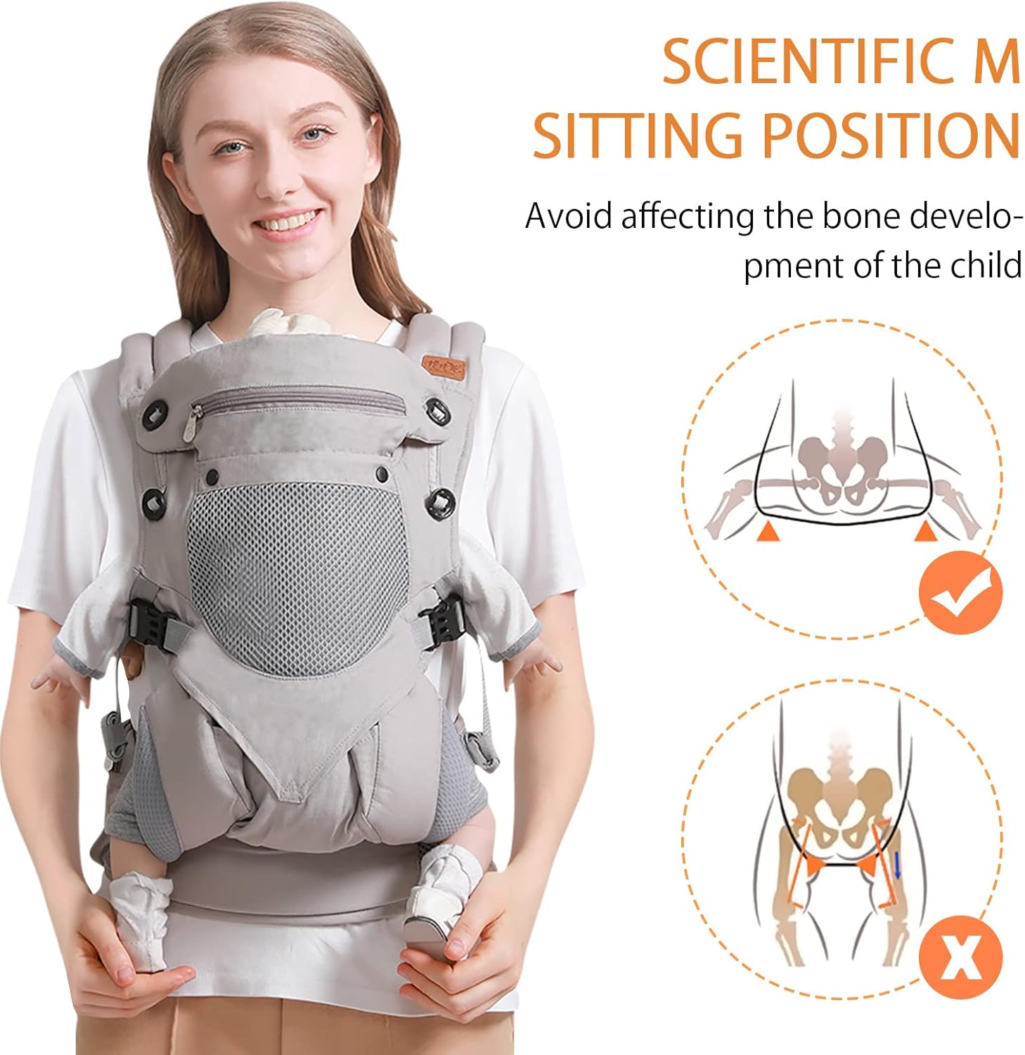 Ergonomic Design: Our baby carrier is scientifically designed to keep baby’s legs positioned in the ergonomic M shape position, avoiding affecting the bone development of baby. Adjustable widened belt help support weight on your hips, scientifically distribute the baby’s weight evenly to achieve comfortable carrying.