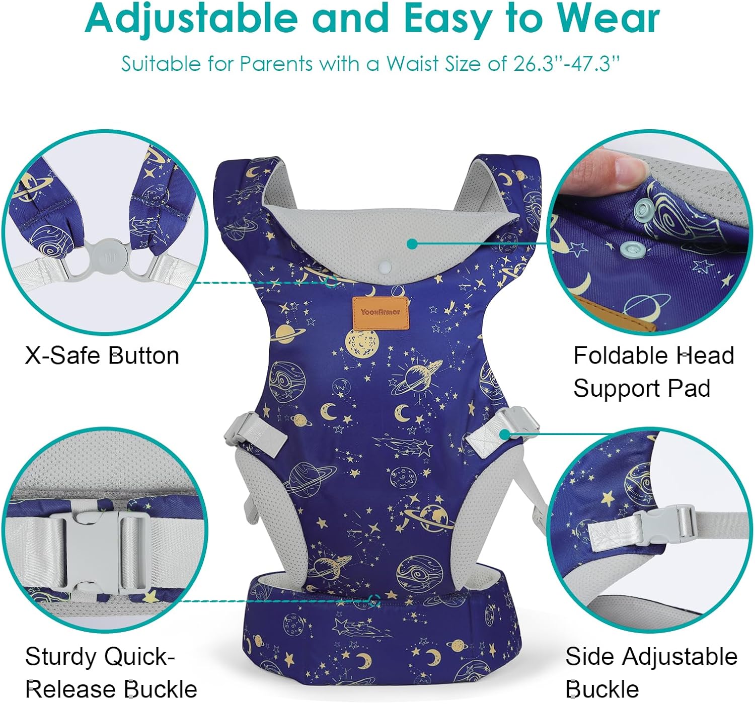 YooxArmor Baby Carrier Newborn to Toddler, Ergonomic Adjustable Toddler Carrier for 7-33 Lbs, Cozy Lightweight Infant Carrier with Neck Support, Baby Holder Carrier with Lumbar Support for Mom Dad