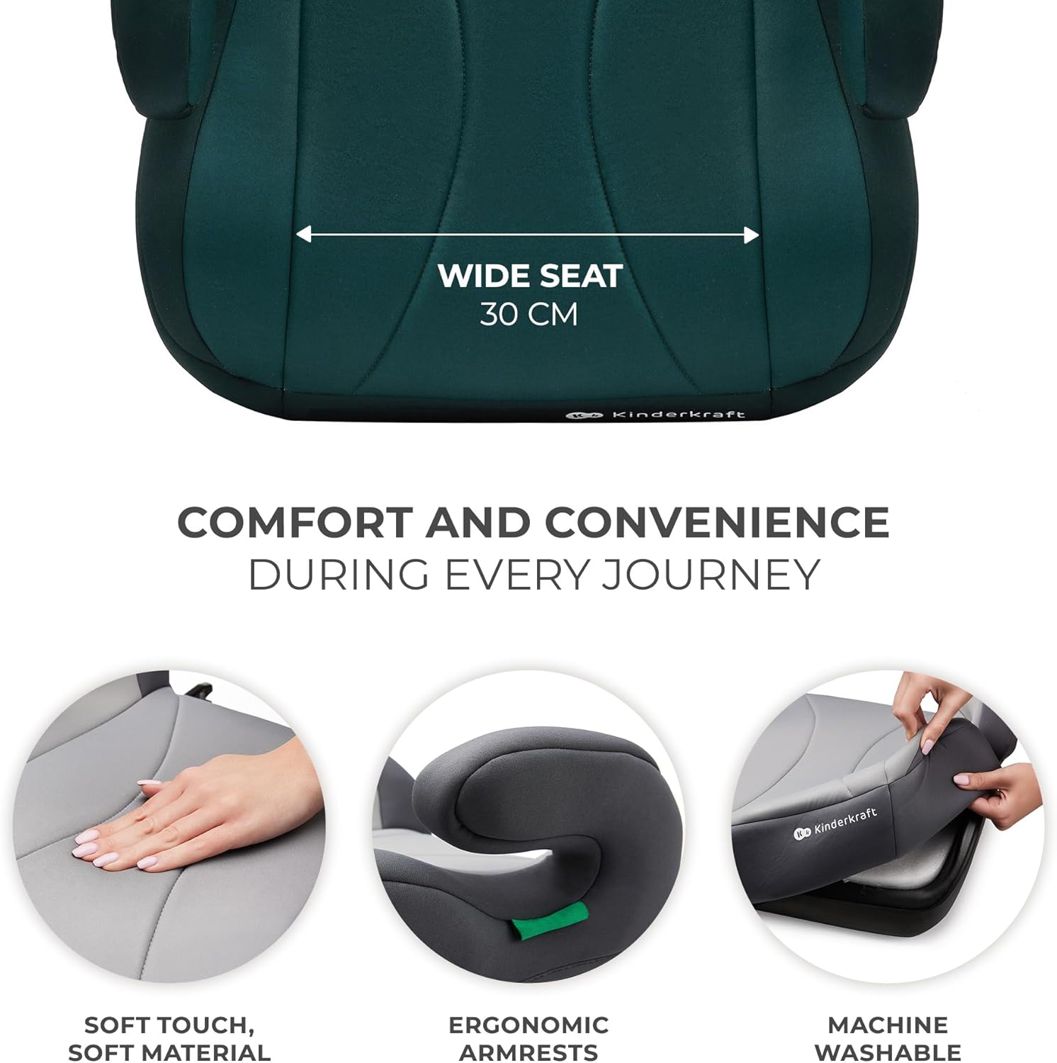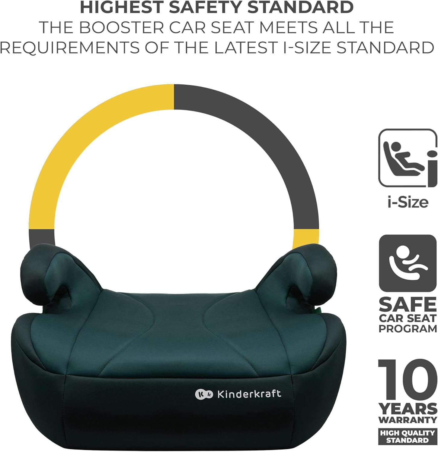 Kinderkraft I-Boost Car Seat, I-Size, 135-150cm, Baby Seat, Booster seat for 9 to 12 Years, Easy to Assemble, Ergonomic Posture, Additional Foam, Green