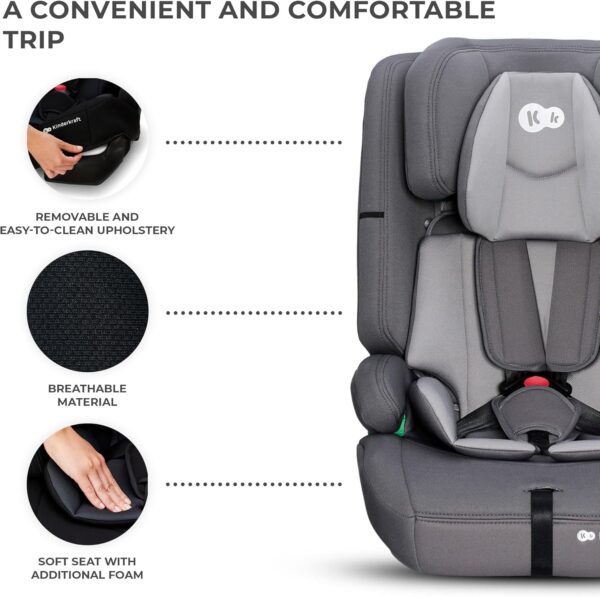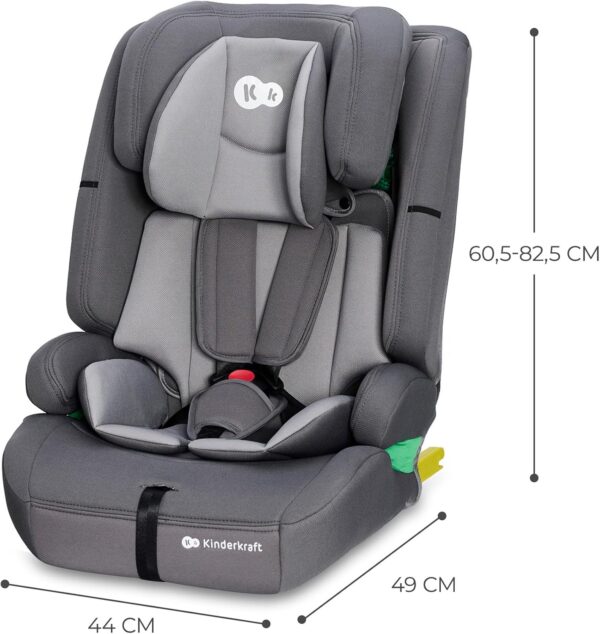 Kinderkraft Safety FIX2 I-Size 76-150 cm Car Seat, 15 Months – 12 Years, Booster Child Seat, Isofix, Top Tether, Adjustable Headrest, Group 1-2-3, 5-Point Safety Harness, Modular Insert, Gray
