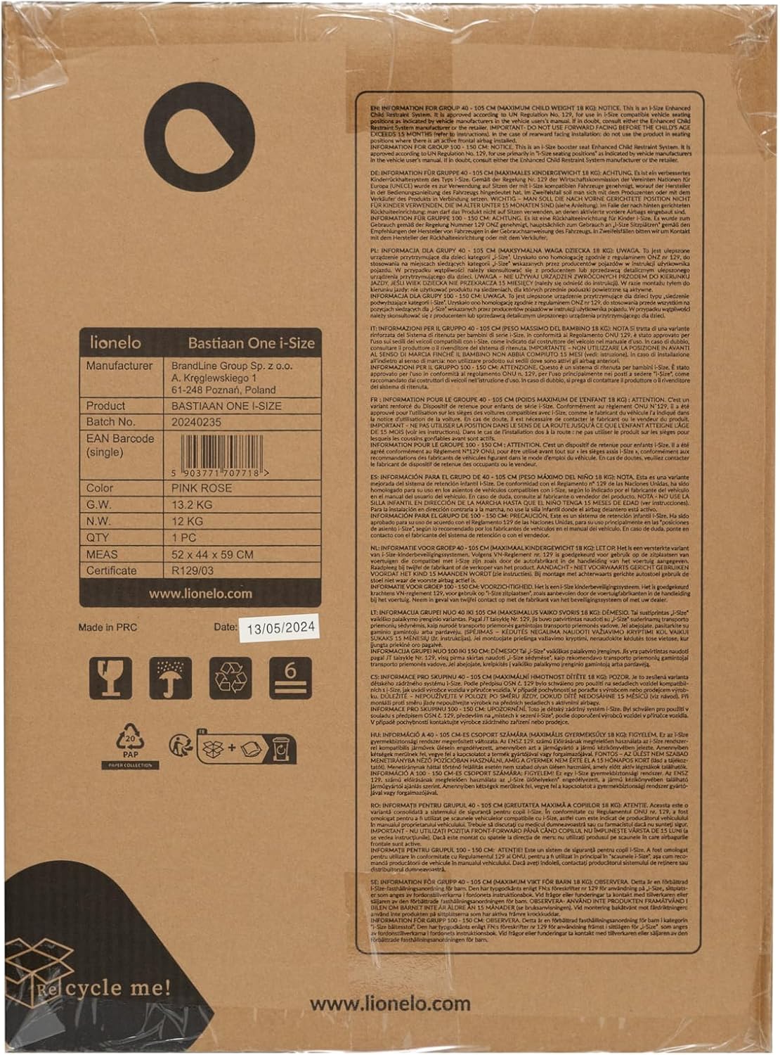 i-SIZE R129 SAFETY CERTIFIED: Beyond comfort, safety is paramount. The Bastiaan I-size car seat has undergone multiple crash tests and meets the stringent i-Size R129 safety standards, ensuring peace of mind for parents.