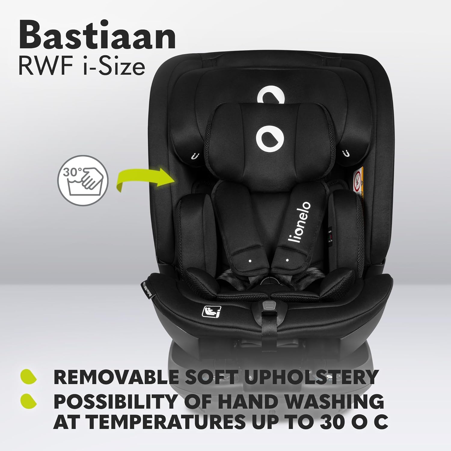 Lionelo Bastiaan RWF i-Size Isofix Car Seat Security & Comfort Ages 0-12 with Advanced i-Size Safety Standards, 360° Swivel, Side Protection, Rear-Facing Option, Adjustable Headrest & Recliner
