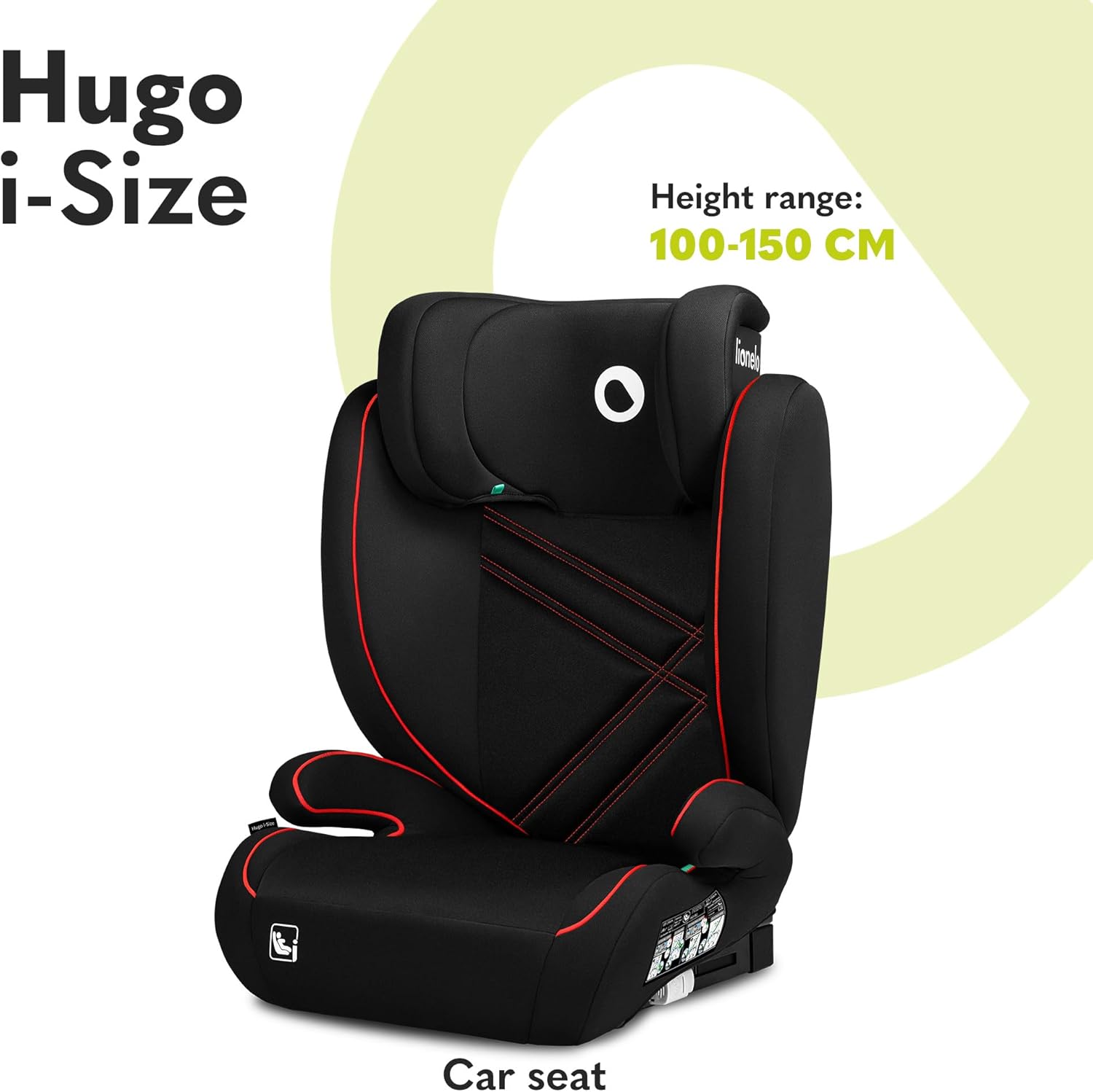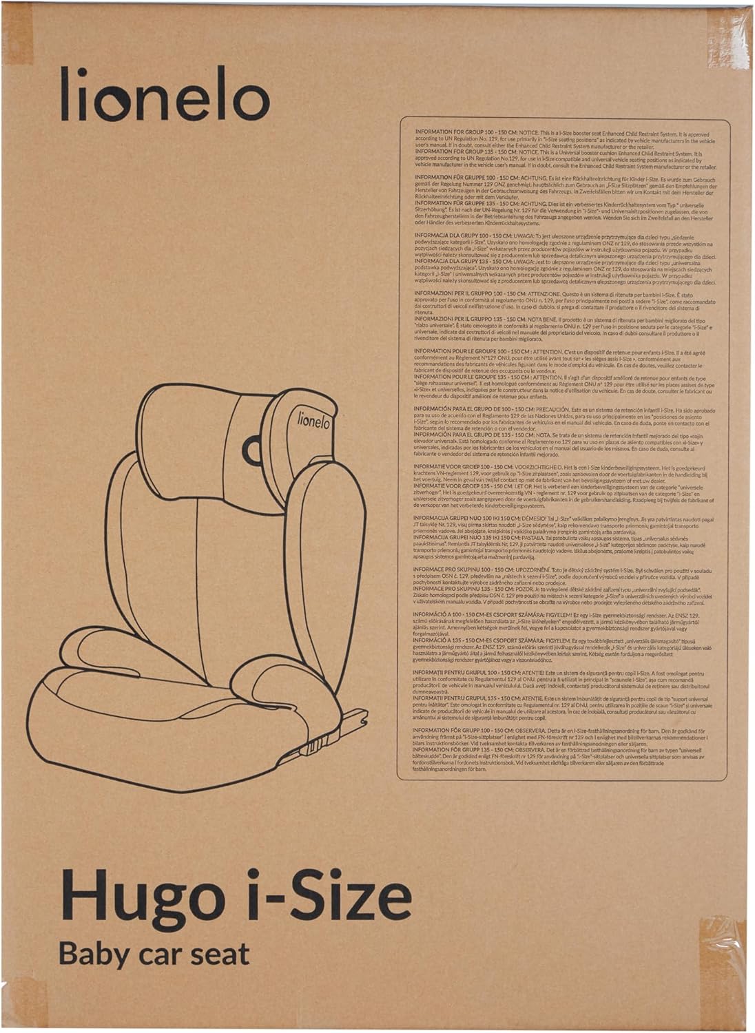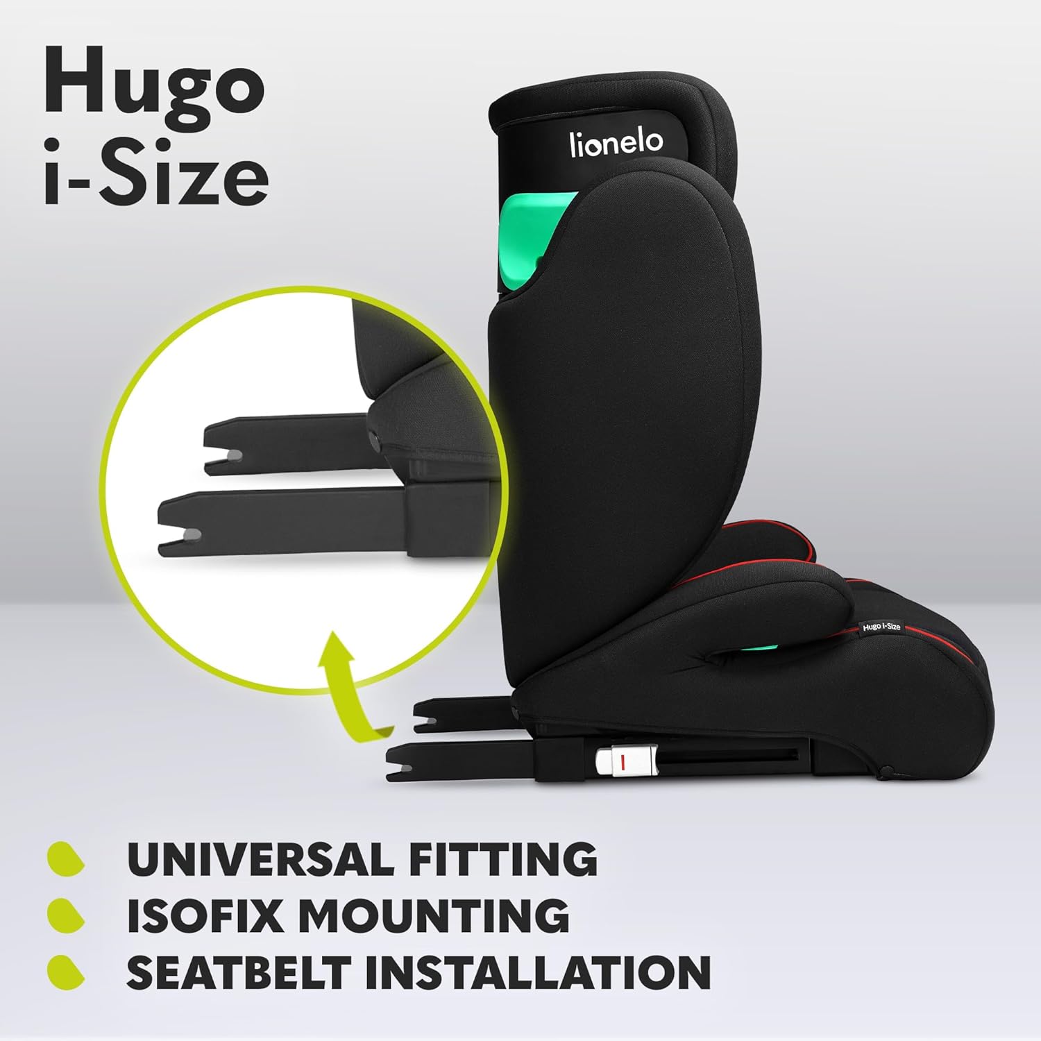 Lionelo Hugo i-Size Child Car Seat with ISOFIX & Belt Mount for Kids Group 2-3(100-150cm) Latest R129 Standard, 8 Level Headrest, Memory Foam, Armrests, Advanced Side Protection, Washable upholstry