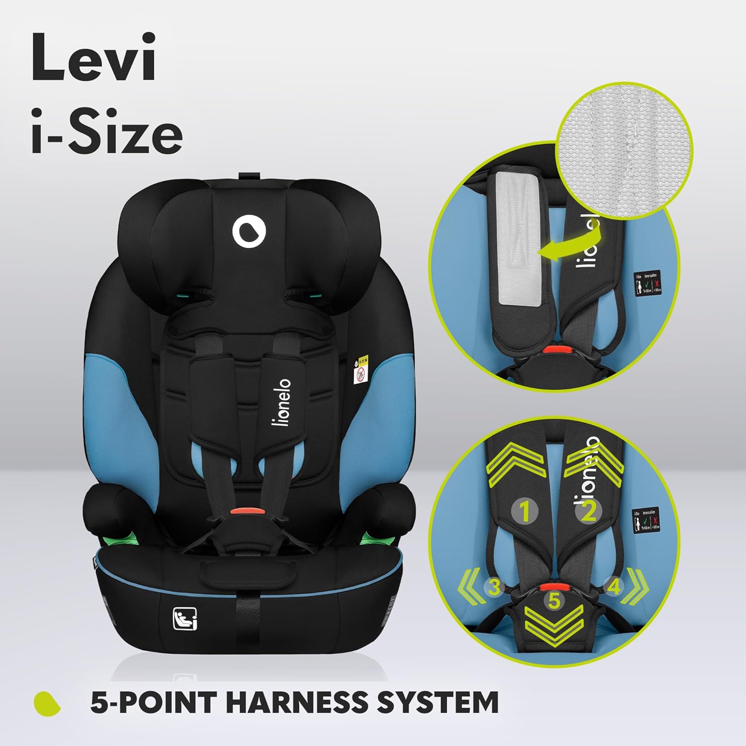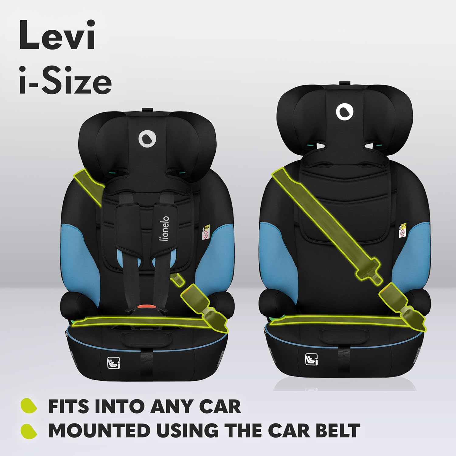 Lionelo Levi I-Size Adjustable Car Seat 9-36kg Transforms with Your Child from Infant to 12 Years Multi-Level headrest & Insert Enhanced Side Protection Easy Install & wash Certified
