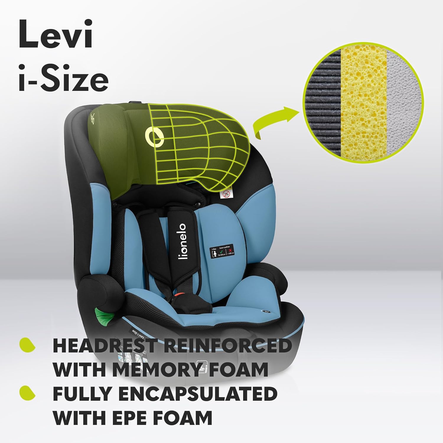 UNPARALLELED COMFORT: Featuring a Memory Foam headrest and EPE foam cushioning, your child will revel in the luxurious comfort provided by the LEVI I-Size Car Seat, making every trip a pleasure, no matter where you are on the map.