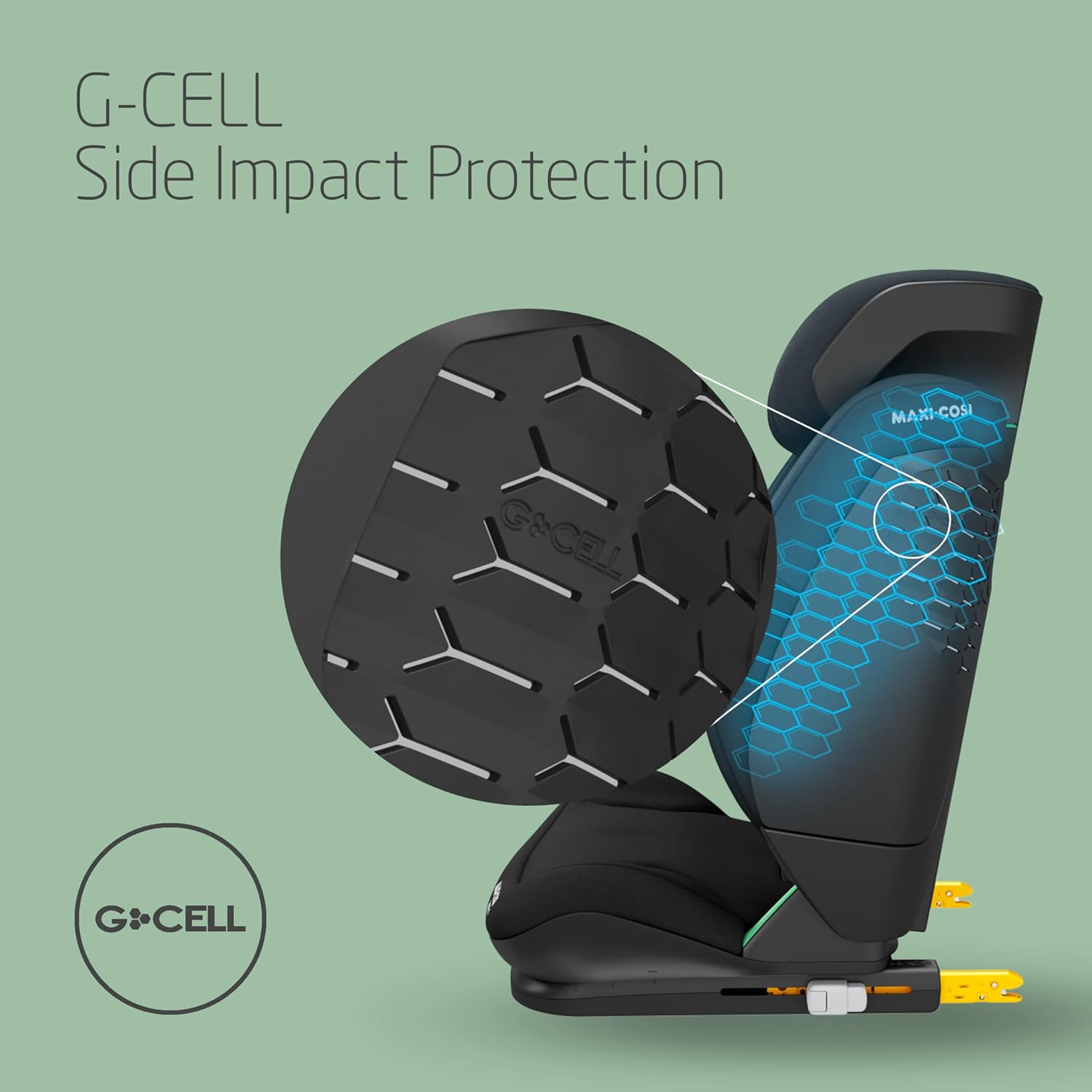 G-CELL SIDE IMPACT PROTECTION: an integrated safety system, providing expert protection from side impact as it spreads the forces away from your child reducing injury to the head, neck and shoulders
