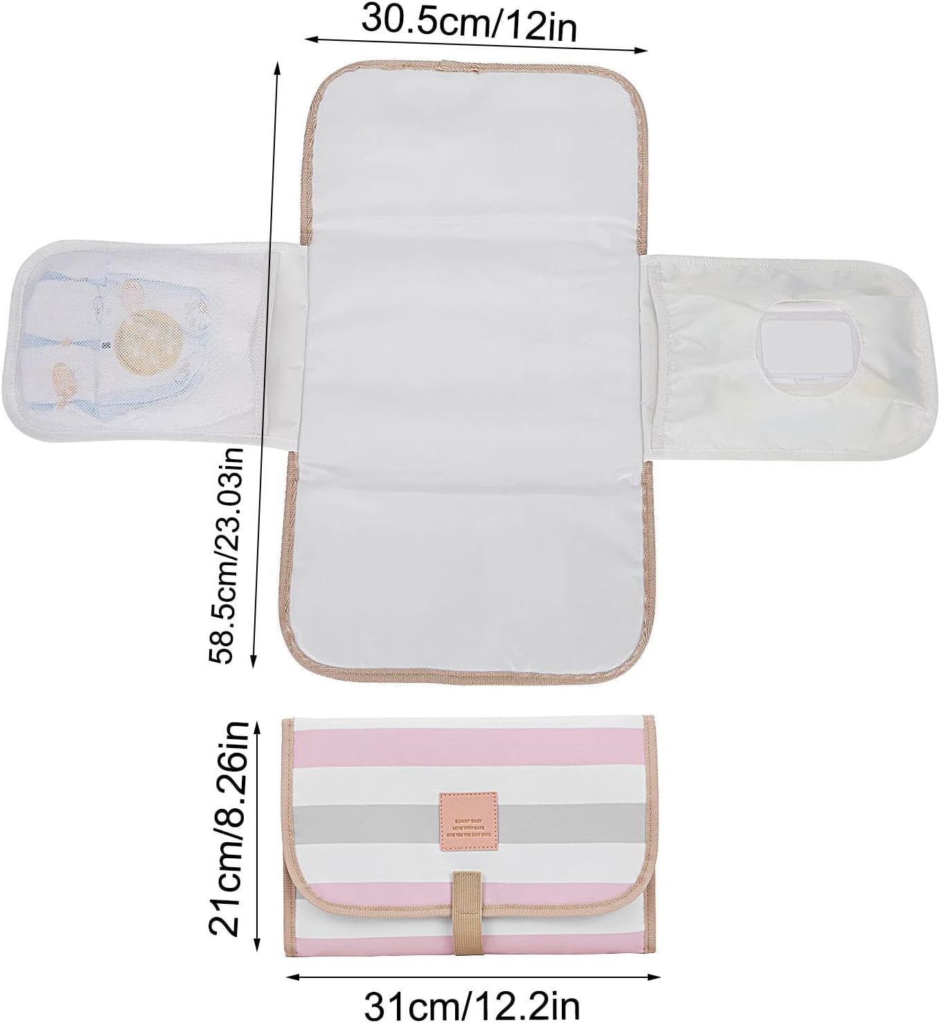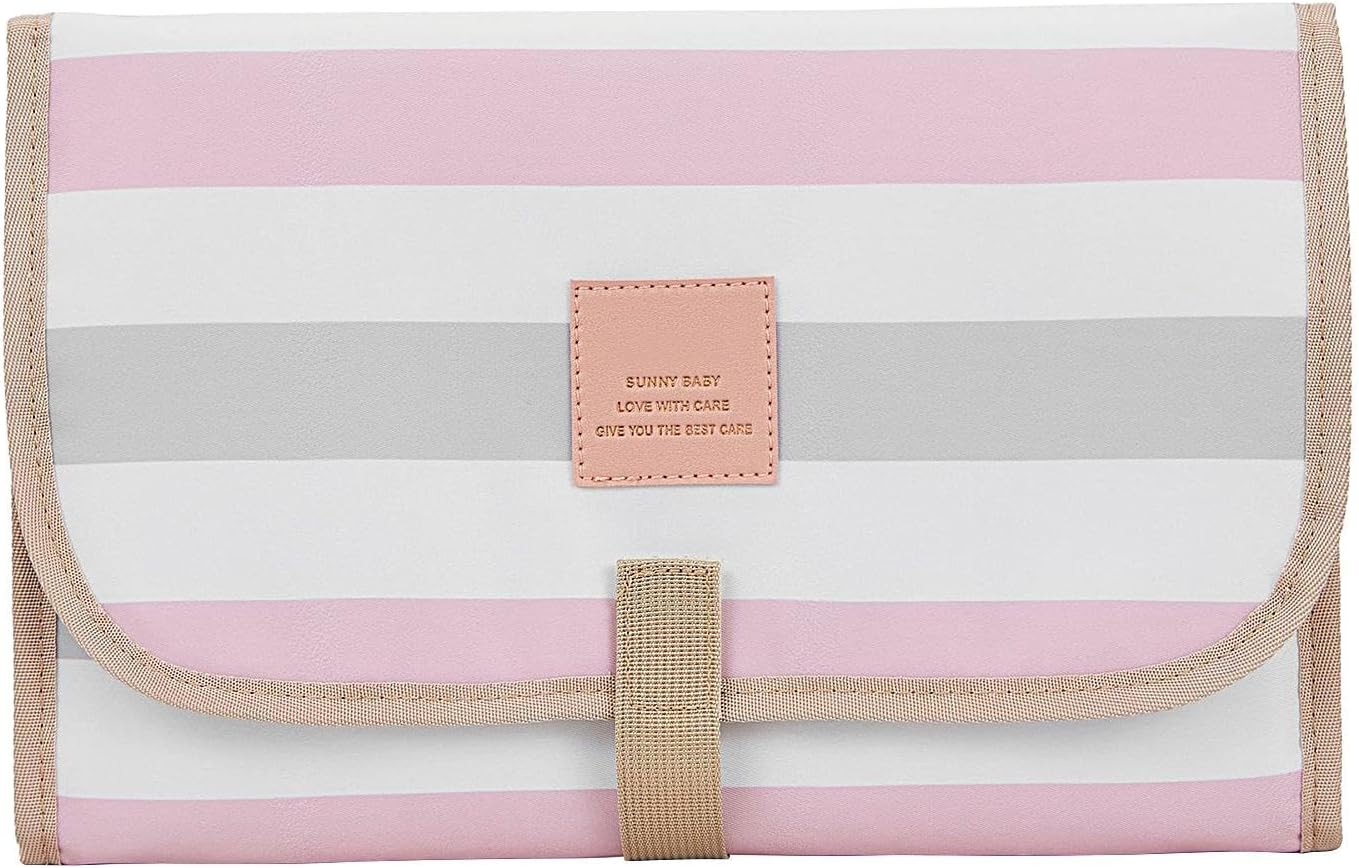 ➧Elegant and Practical: Featuring classic stripes, this portable changing pad complements any look or diaper bag, adjusts and closes smoothly with magic stickers, ensuring long life.