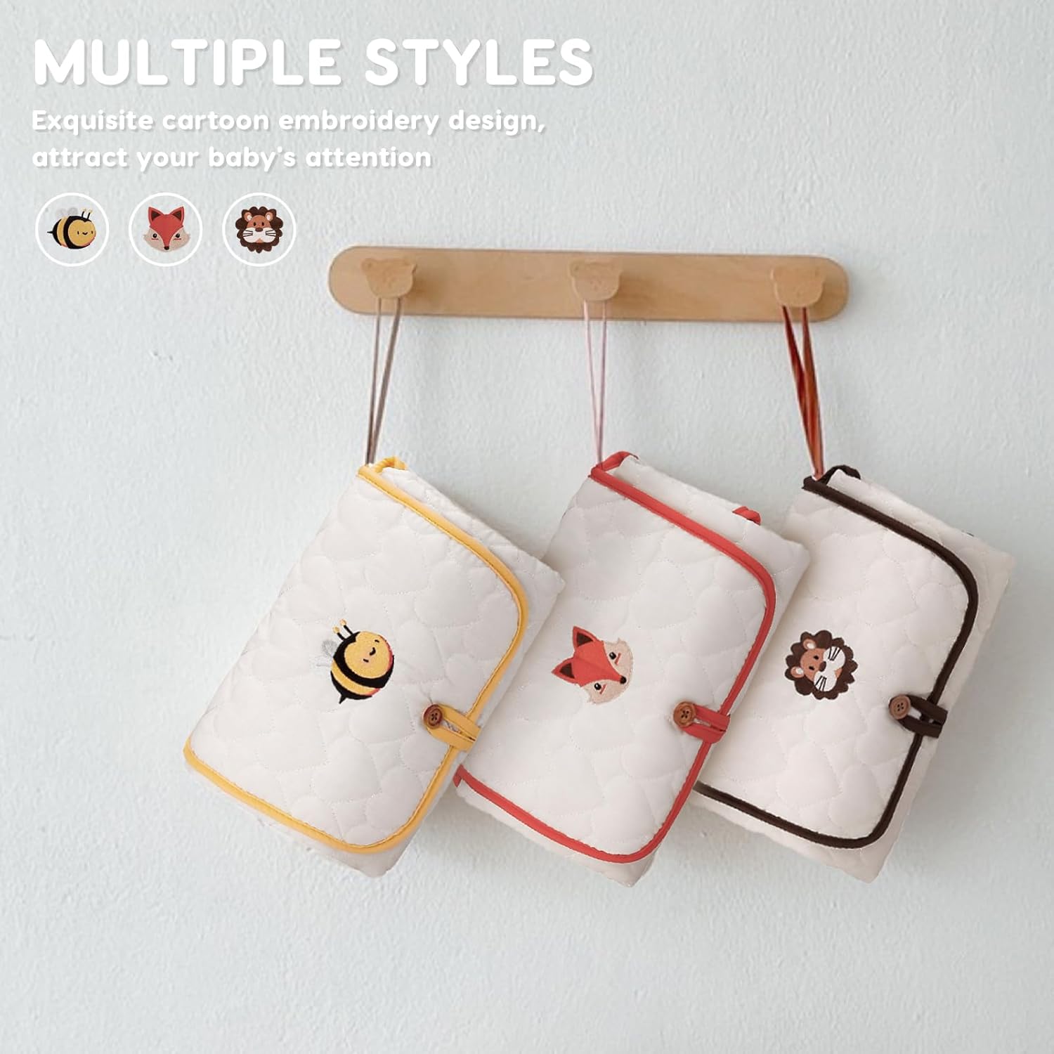 SONARIN Cute Portable Baby Changing Mat,Waterproof Folding Diaper Changing Pad Lightweight Travel Nappy Changing Mat Changing Station with Pocket for Newborns Infants(Fox)