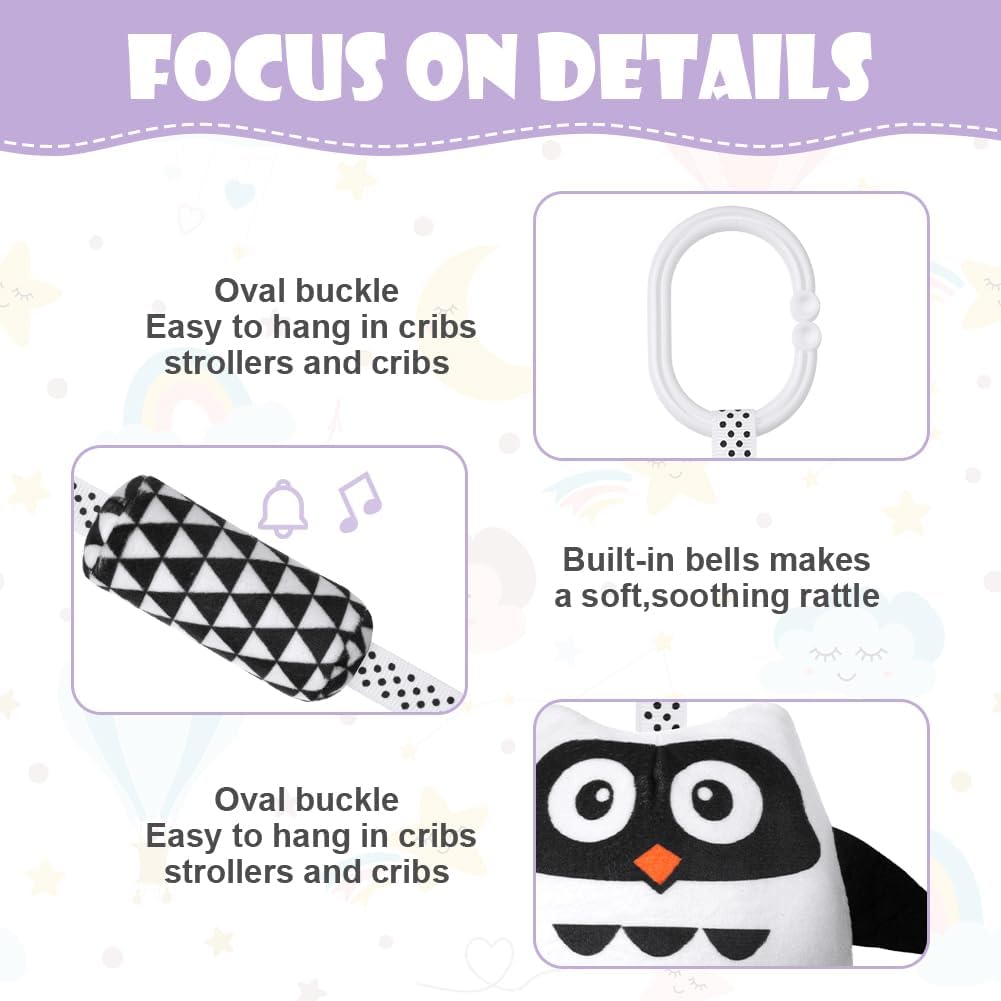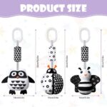 ♫【Black and White Developmental Toys】The sight and sound travel toys are baby toys suitable for newborns and above, and the black and white stroller toys are one of the most effective ways to stimulate the vision of newborn babies. Develop baby’s visual ability, different animal patterns, interesting patterns, stimulating to baby.