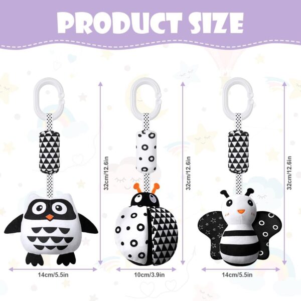 Aolso Baby Pram Pushchair Toys, 3 Pack Hanging Rattle Toys, Black and White Toy Rattle Baby Hanging Toys, High Contrast Sensory Educational Toy, Newborn Car Seat Toys for Boys Girls
