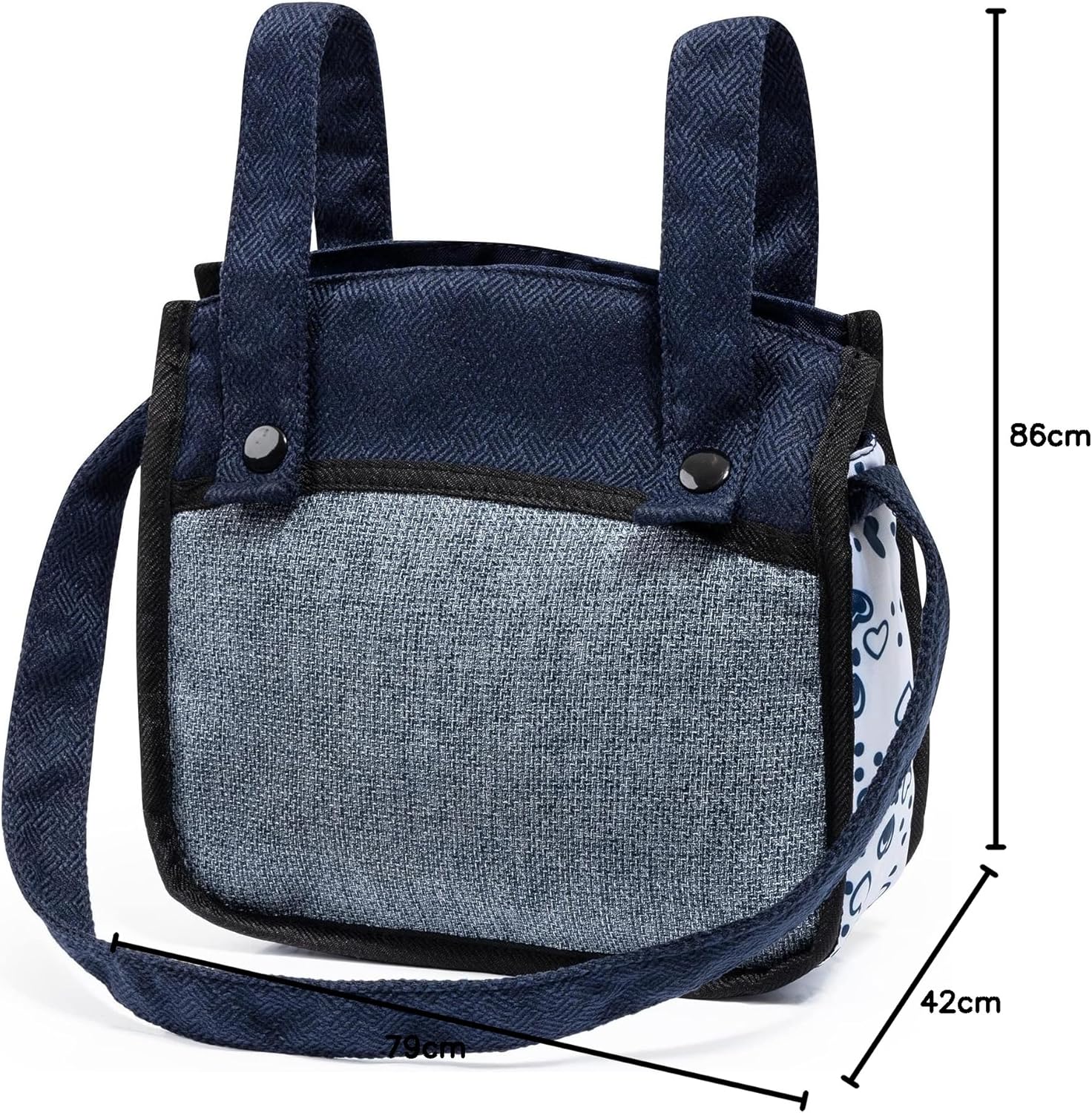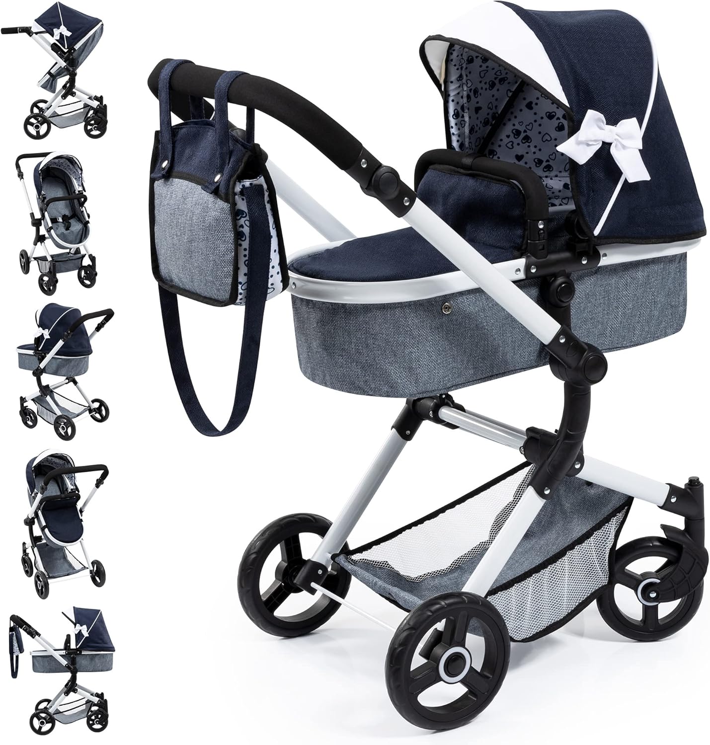 Bayer Design 18481AB Combi Doll’s pram Neo Vario with Bag and Shopping Basket, Convertible into a Stroller, Height Adjustable, Blue, White
