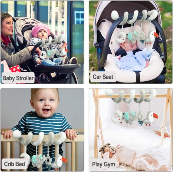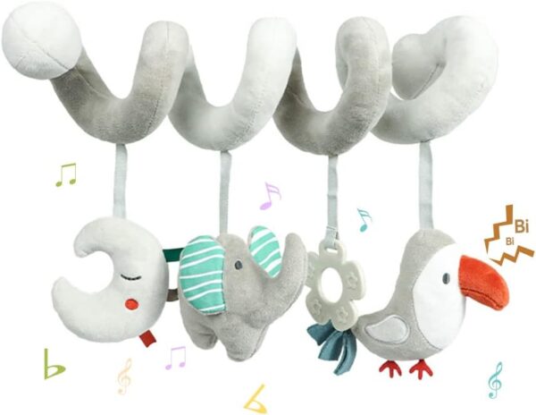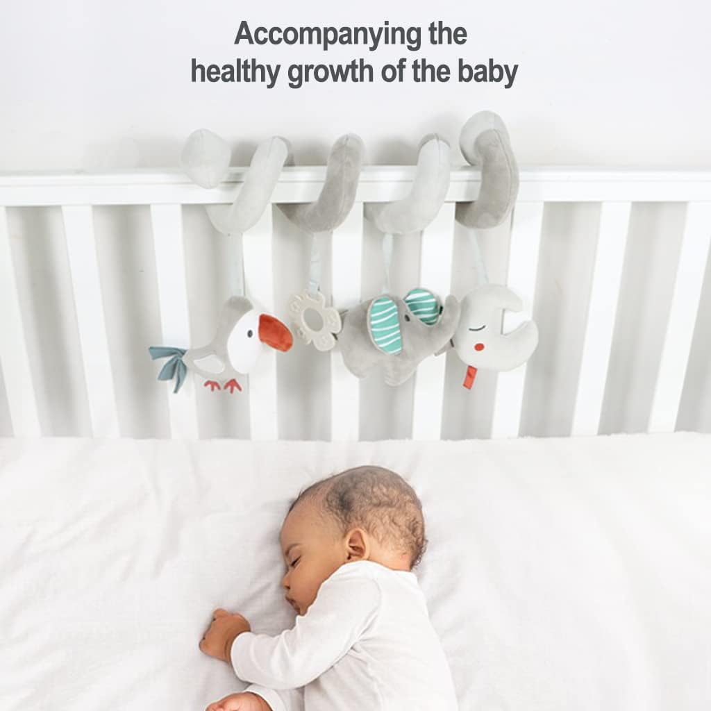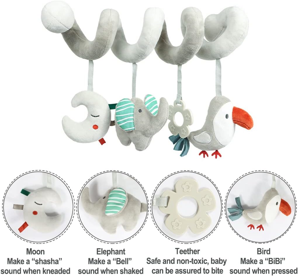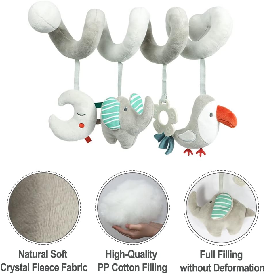 Blublu Park Spiral Pram Hanging Toys for Babies, Activity Spiral Plush Hanging Wrap Around Pram Pushchair Stroller Toys, Sensory Early Education Toy for Toddler Infant, Grey Elephant