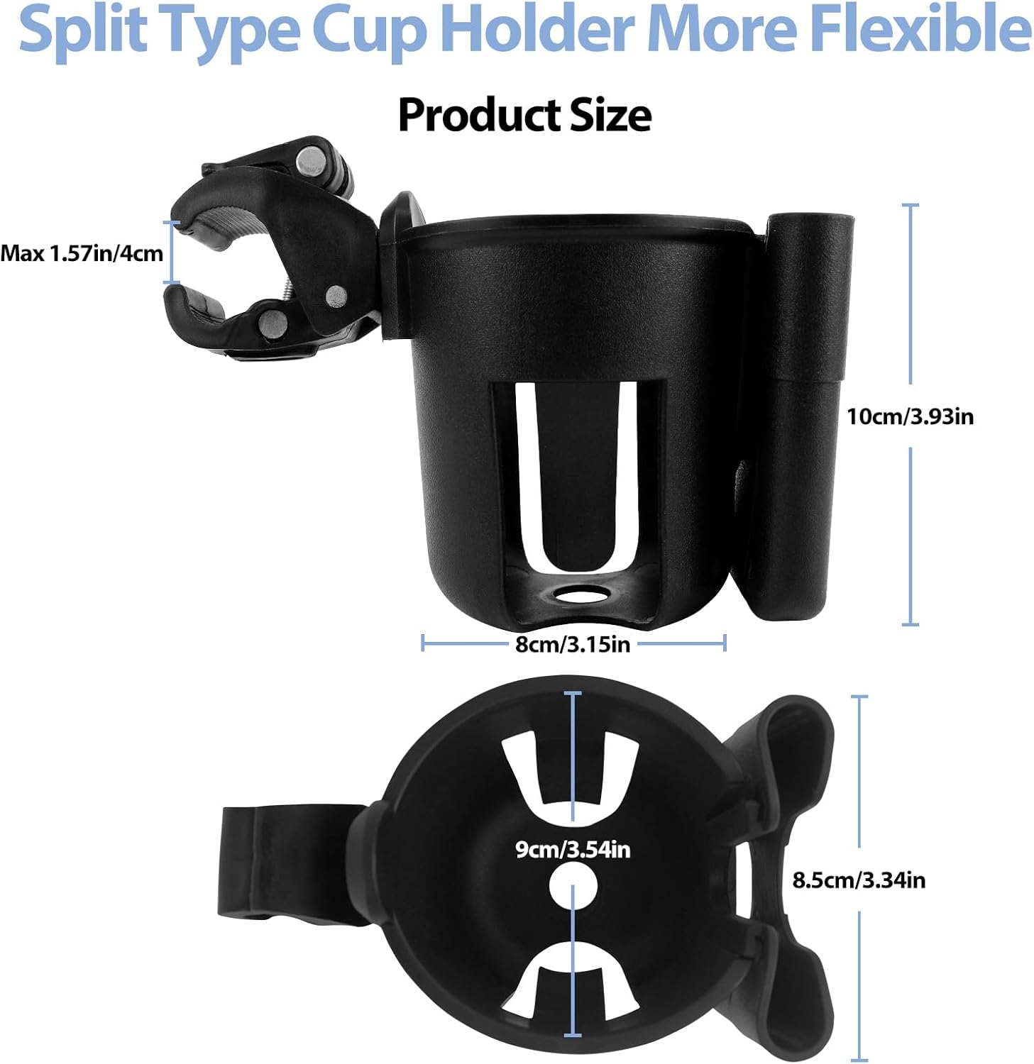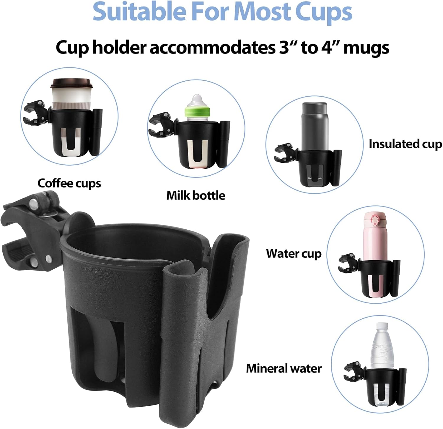 Outdoor Essentials: Stroller cup holder is great for shopping or traveling with a variety of baby bottles, drink bottles and coffee cups. In addition, it is a handy cup holder for wheelchairs, luggage, bicycles, walkers, mobility scooters and more.