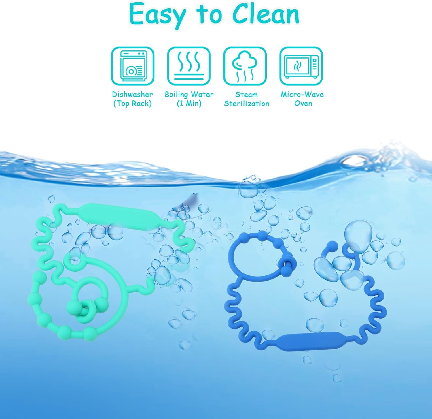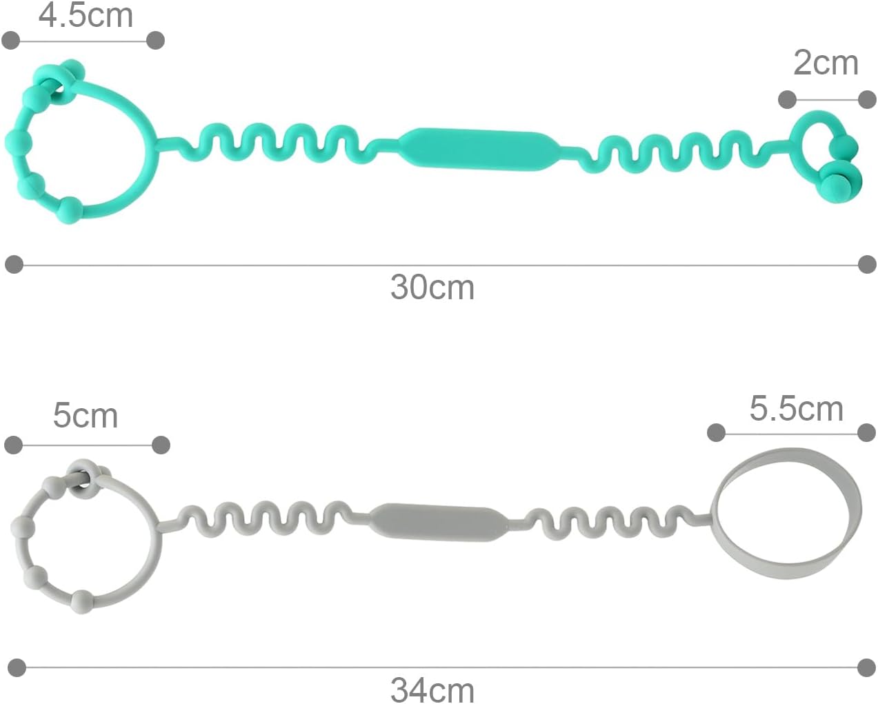 💚Easy to Clean and Sterilize: Our stroller toy straps are made of food grade, heat-resistant silicone and can be easily washed in water or placed in the dishwasher or sterilizer for cleaning. The design promotes baby’s visual, motor and sensory development. Note: Please ensure disinfection by soaking it in boiling water before first use.