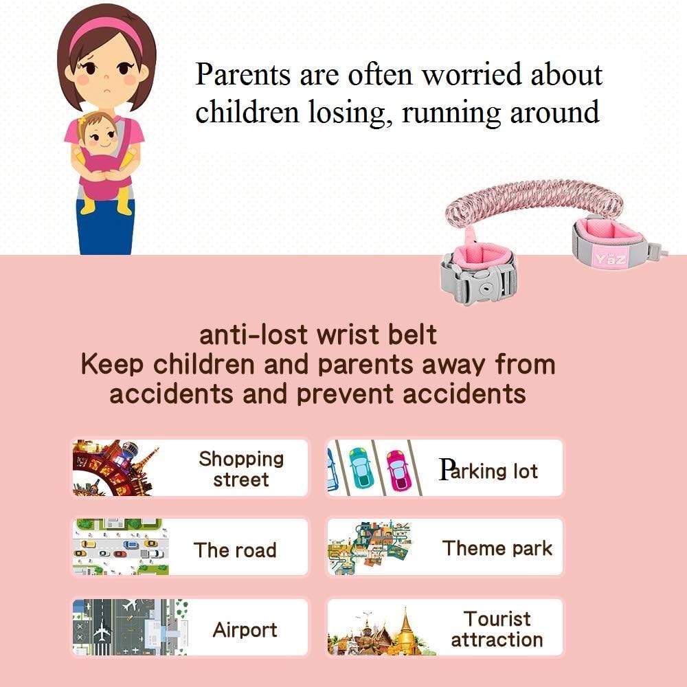 It includes a 150cm/59inch anti lost link with 360 degree rotatable stainless metal buckle and a soft skin-friendly wrist band, safe helper, easy to carry which will keep children more closer and safe to avoid any other destructive behavior any other accident.