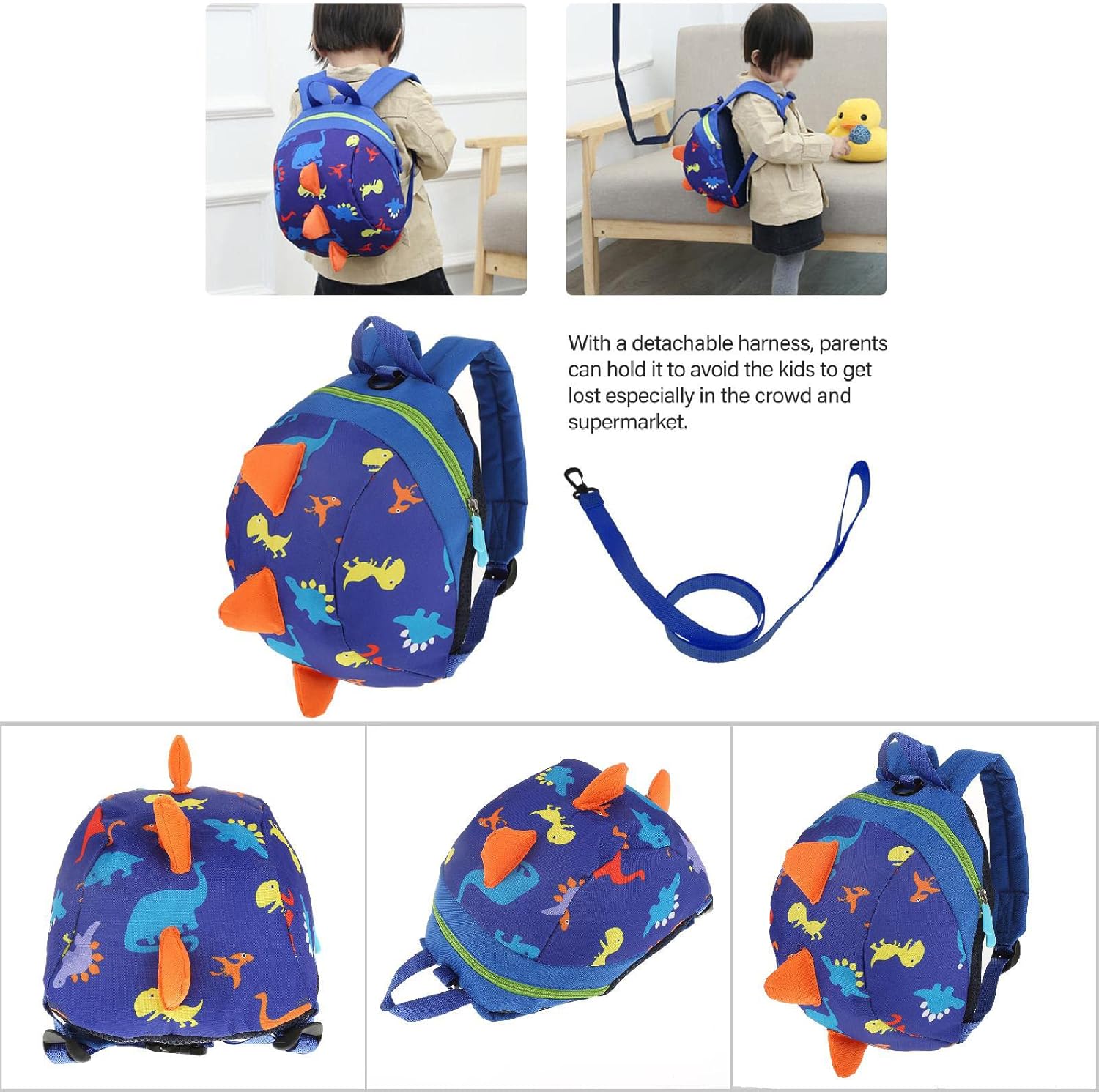 Fdit Schoolbag Anti-lost Cute Cartoon Dinosaur Baby Safety Harness Lightweight Backpack Toddler Anti-lost Bag Children (Dark Blue)