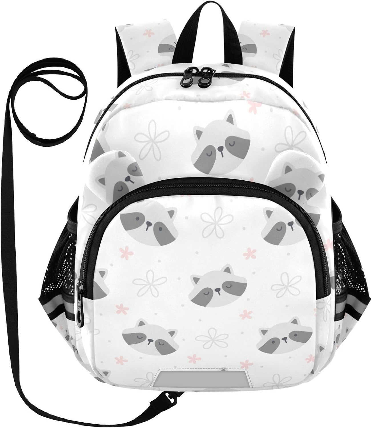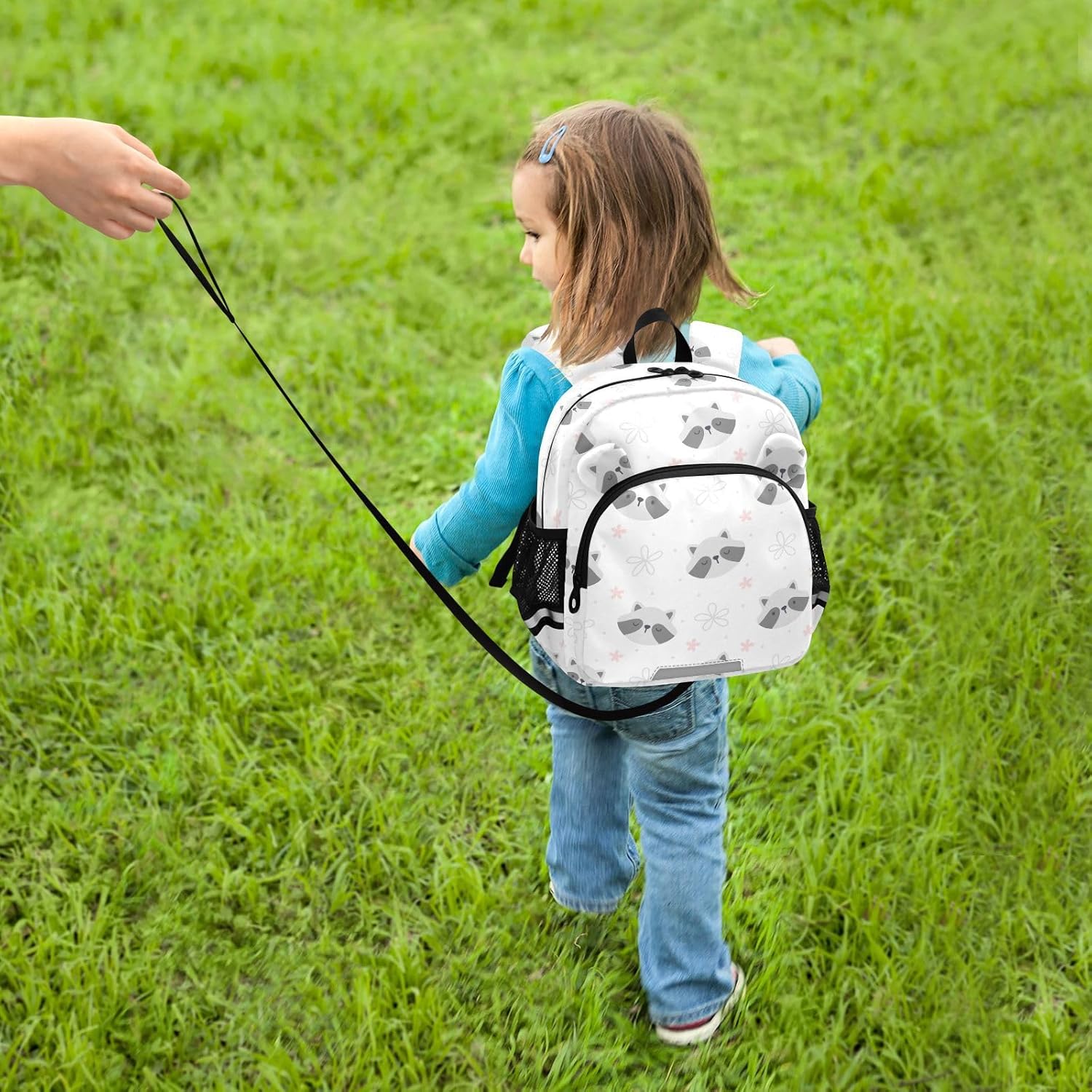 ISAOA Toddler Backpack with reins, Kids Anti-Lost Rucksack with Safety Harness,Cute Raccoon with Floral Backpack for Boys and Girls Baby Preschool Mini Bag with Leash,S