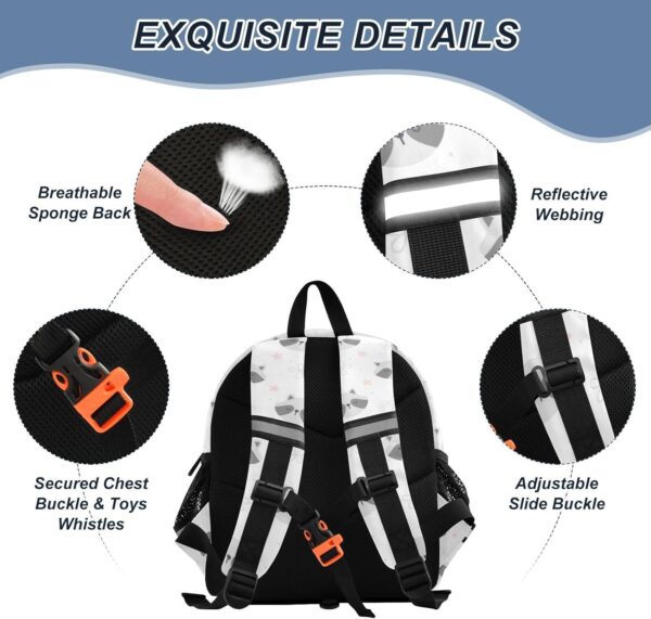 Large Capacity:The kindergarten backpack is lightweight and portable, can hold change of clothes, toys, snacks, bottles,nappy,books and handkerchiefs, can be easily carried in the bag.