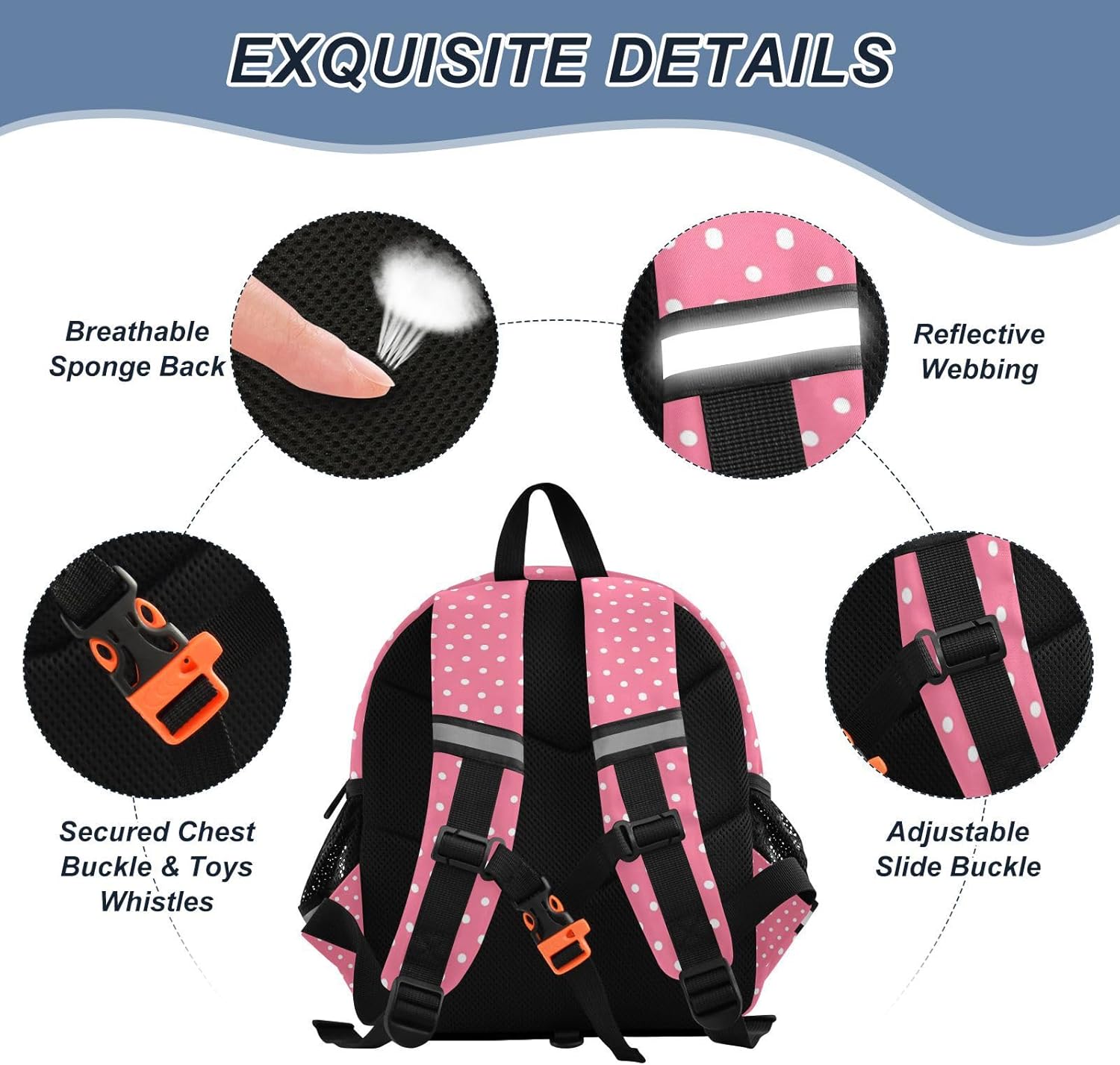 ISAOA Toddler Backpack with reins, Kids Anti-Lost Rucksack with Safety Harness,Pink Littele Polka Dot Backpack for Boys and Girls Baby Preschool Mini Bag with Leash,S