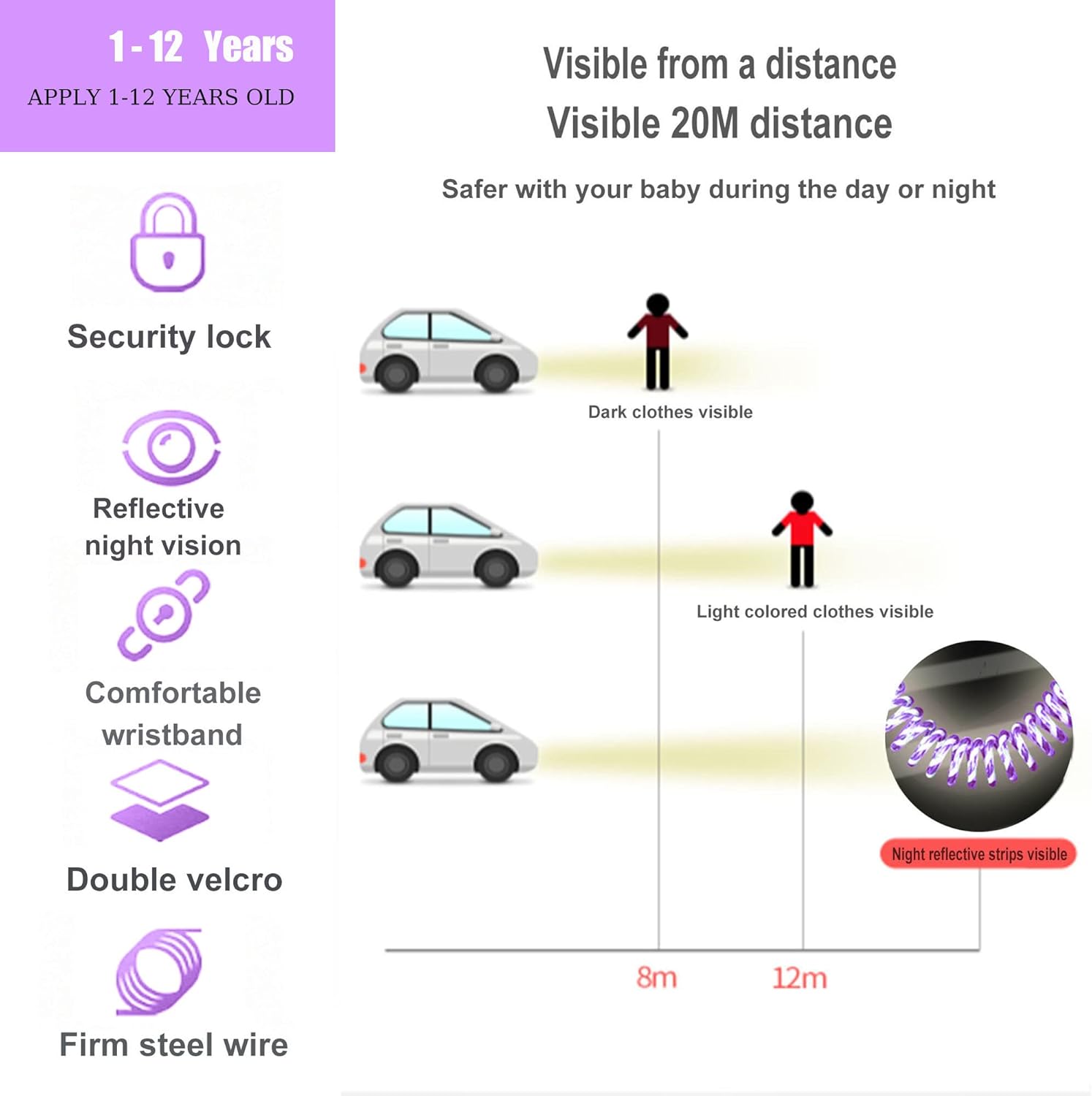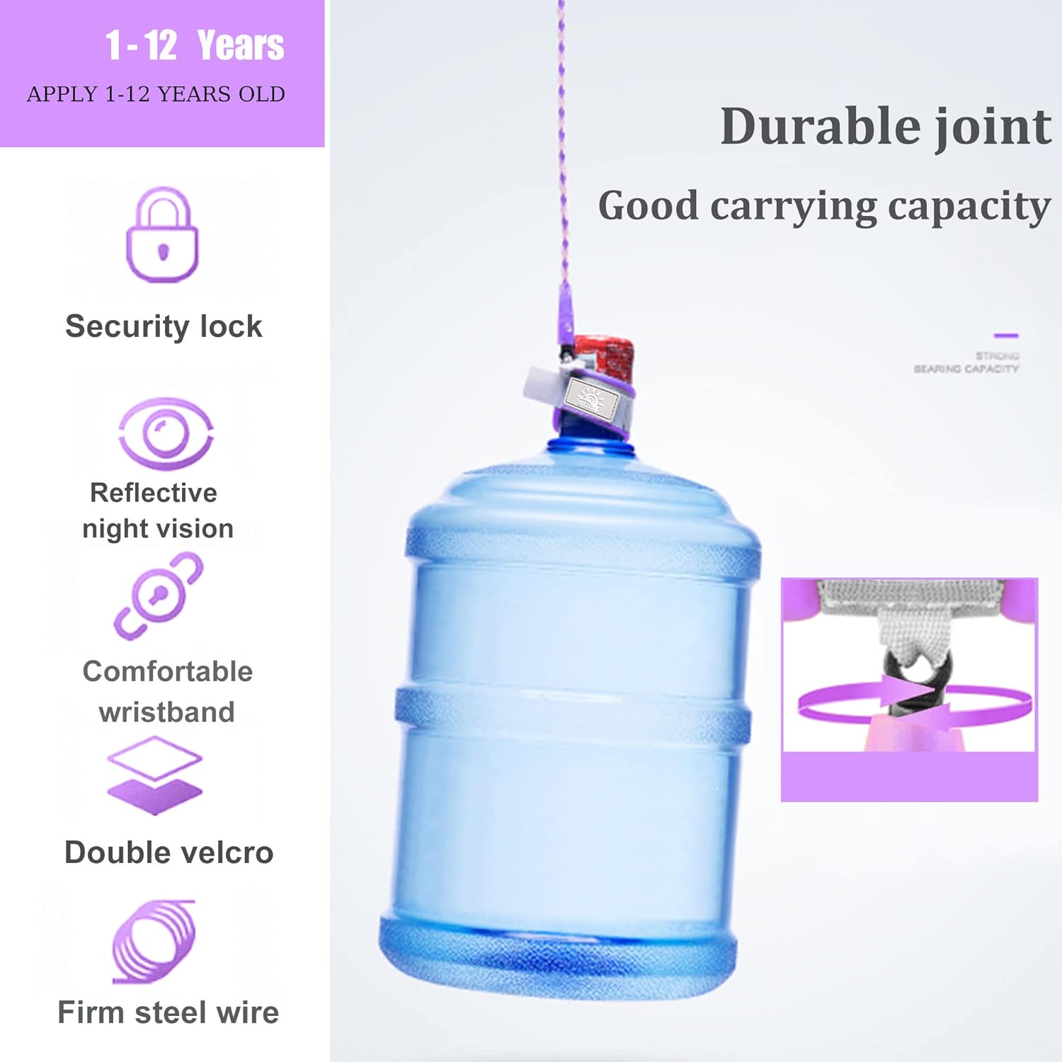 Description Every parent knows what it feels like to lose a child. Naughty and energetic children are easily lost to adults, especially in crowded places. These adjustable wristbands are attached to the child’s wrist with Velcro straps, and the extra thick wire ensures that they will stay with you. High quality lock and key design provides extra security Once locked, the child will not be able to remove the wristband until they are unlocked by their parents. We also include built-in reflective tape to maximize visibility in night and dark places. Our baby leash has below Key Features:Safety Child Lock – There are total 4 locks on each connections to prevent opening by accident or by children.Reflective anti-lost – keeps you and your child easy to find and protect the safety of you and your child at all times.360° Rotation – The 360°revolving head enables your little ones play and run freely, no need to worry that you kids will be tripped over.Breathable Cushion on Oxter and Wrist – Comfortable, breathable and anti-friction.Bigger Stainless Steel Wire – Prevent flimsiness and breakage, and firm enough to withstand daily twisting and pulling. Product specifications: – Material type: PU + steel wire + Velcro, water absorption and fabric – Color: pink, blue, cyan,orange – Length: 8.2 ft (2.5 m 6.56 ft (2 m) 4.92 ft (1.5 m) – Connector: 360 degree rotation line – Recommended for children 2 years and older Precautions: 1.The anti-lost wristband is only used to prevent children from getting lost. They should not be used for walking exercises or for children to fall. 2. These wristbands are very flexible. If the parents don’t follow, the rope may be pulled too long and the child may fall. Children should not wear them unsupervised, and parents should not teach their children how to unlock themselves.