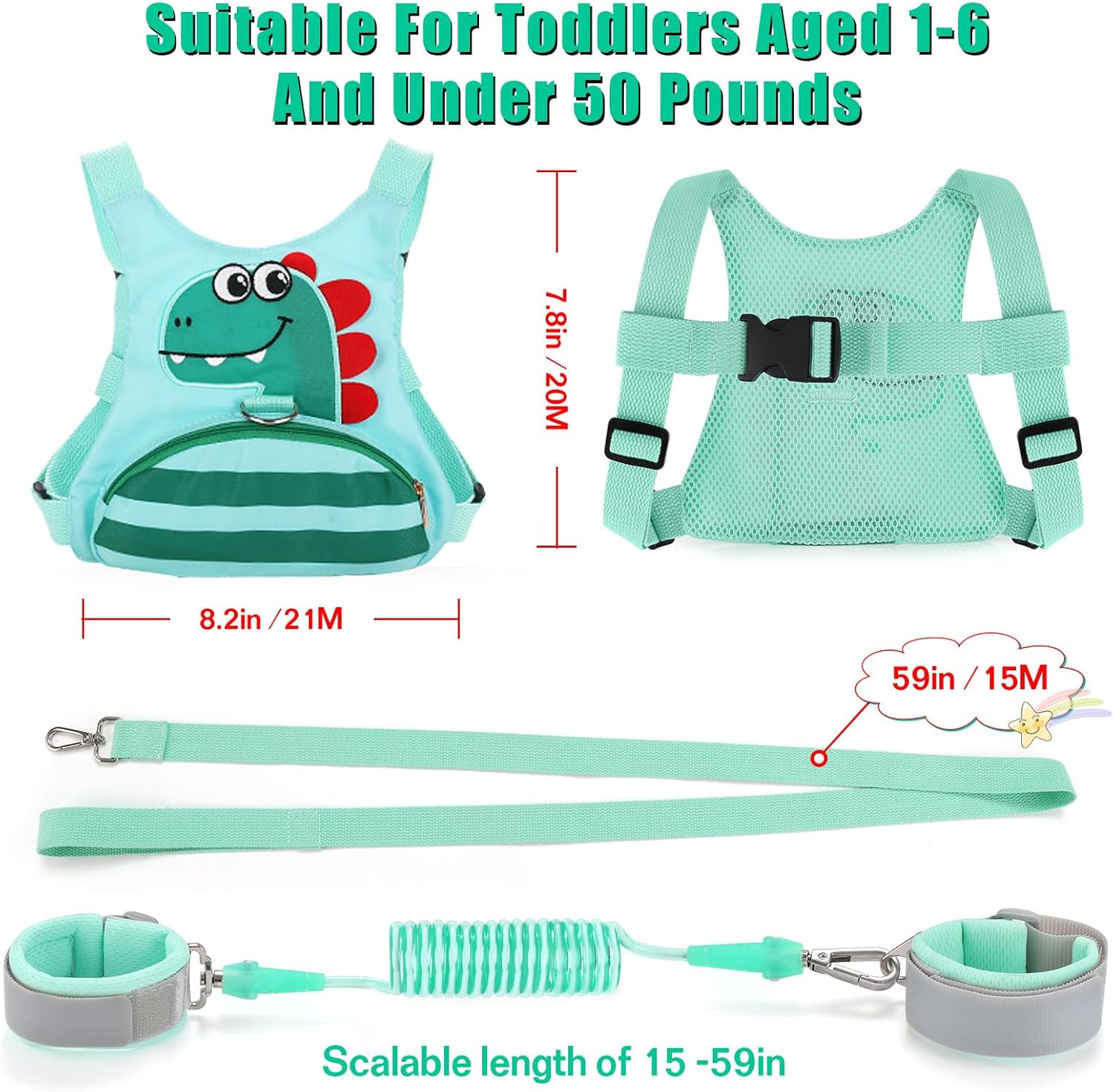 Toddler Leash for Kids-Baby Backpack Child Harness with Anti Lost Wrist Link for Boys/Girls (Green)