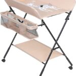 Your baby can sleep under the stars with the soft light projection of the Fisher-Price Soothing View Bassinet. This portable crib rocks gently with a slight push from you, and features cool mesh sides, calming vibration, music, and sounds to help soothe baby to sleep. Unfold the soft canopy over the head, and the baby will be mesmerized by two hanging toys and a starry light projection. When it’s time to leave, the slim fold of the bassinet makes it easy to carry or store. Use only with a child who cannot push hands and knees, get up or sit unaided.