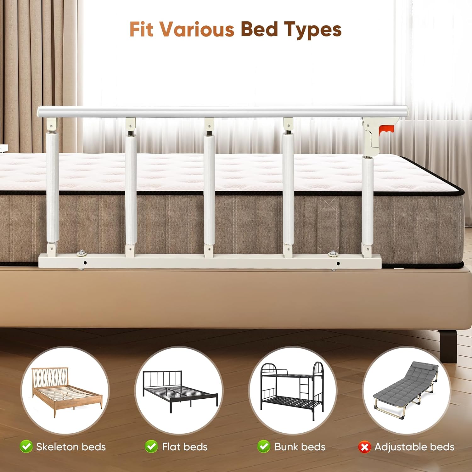 Stylish & Compatible Design:Our elderly assistance product has a white and silver color scheme that blends into the bedroom decor. It fits 5-8” mattresses and is suitable for use with platform beds, slatted beds, and bunk beds (not compatible with folding beds).