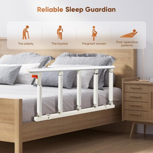 Reliable Sleep Protection:Our bed rail for elderly is designed to prevent nighttime falls and offer balance support during bed transitions. It is ideal for seniors, individuals with injuries, pregnant women, and post-operative patients, ensuring a safe and comfortable sleep experience.