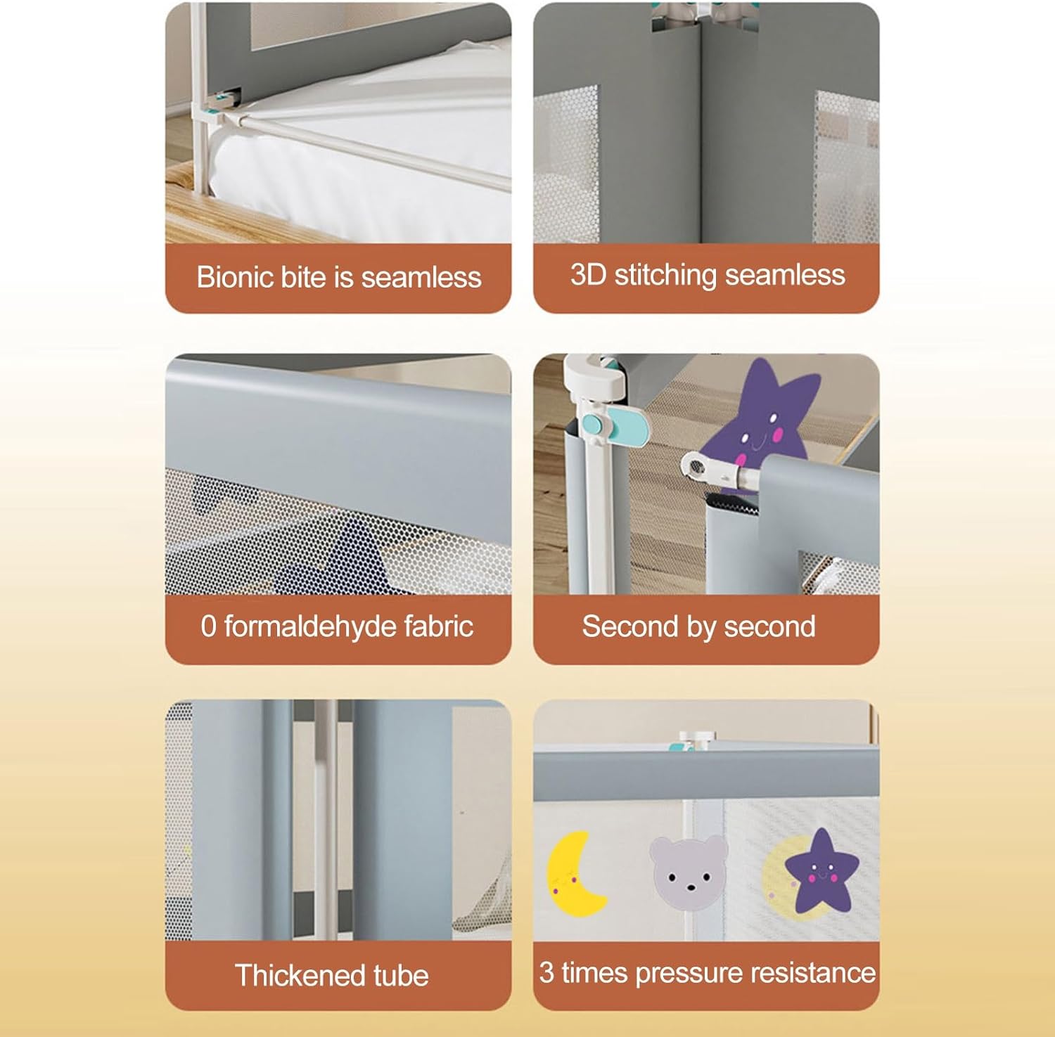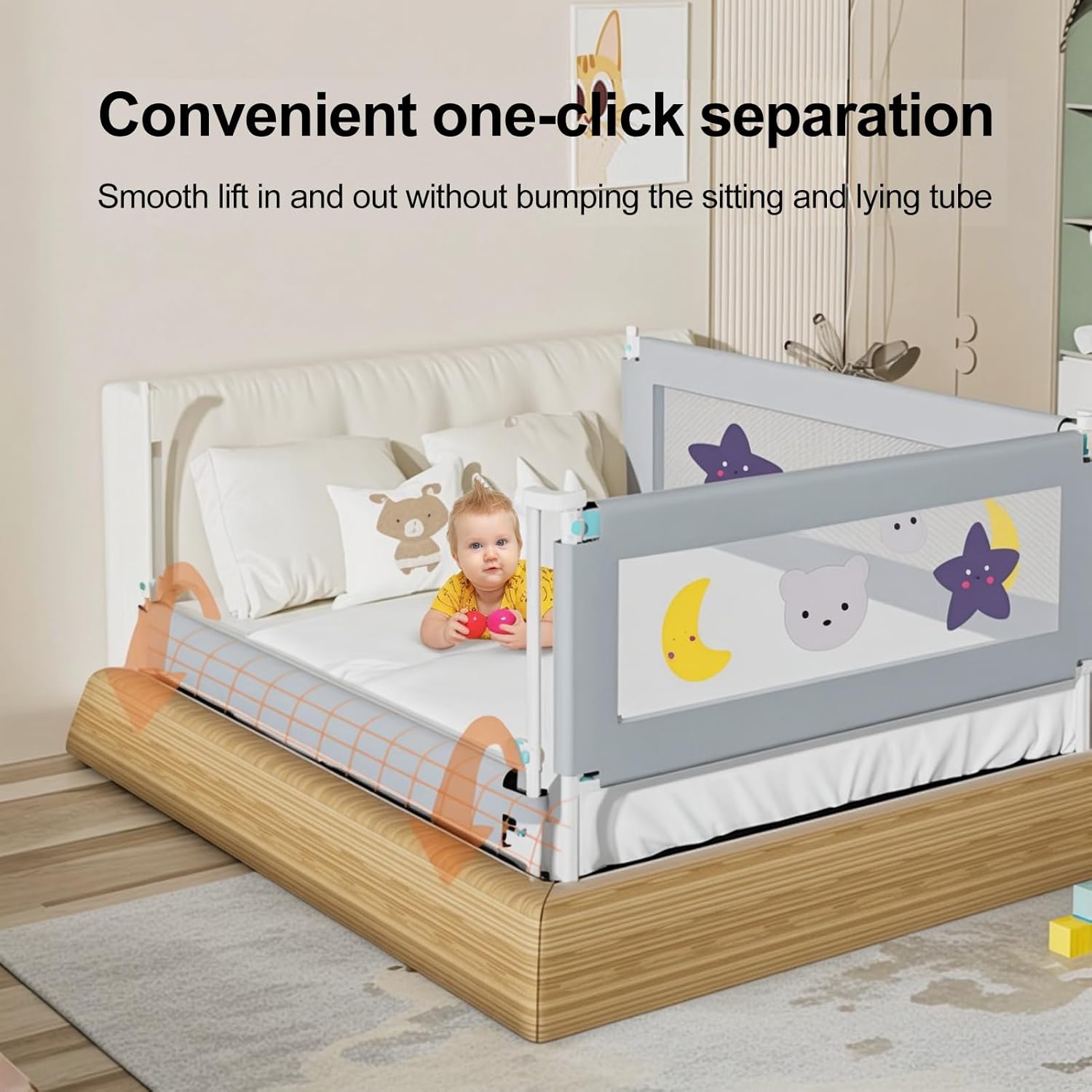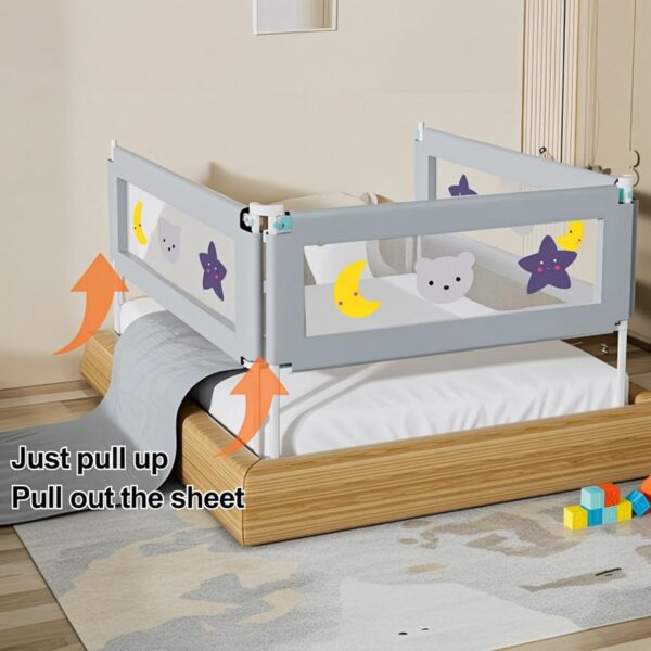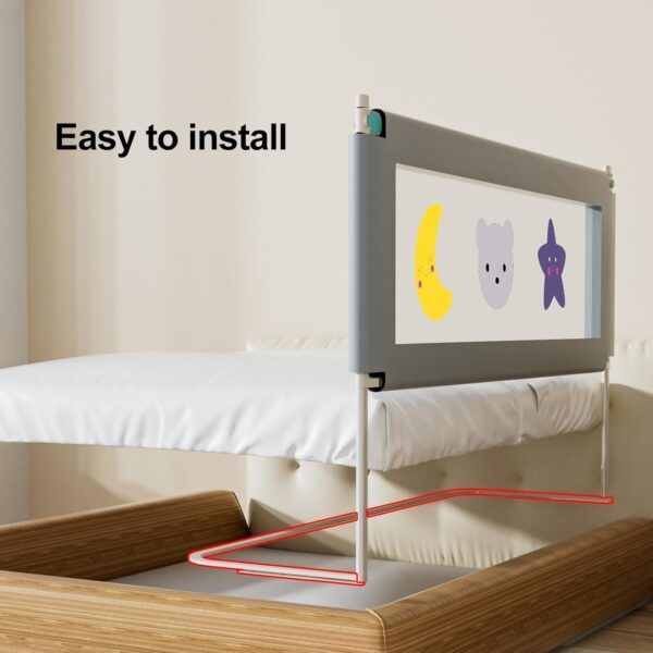 High Quality Material: extra long kids bed guardrail, the guardrail cover is made of breathable textile material and durable metal frame. The fabric is washable, nontoxics and harmless, safe for baby to touch and bite.