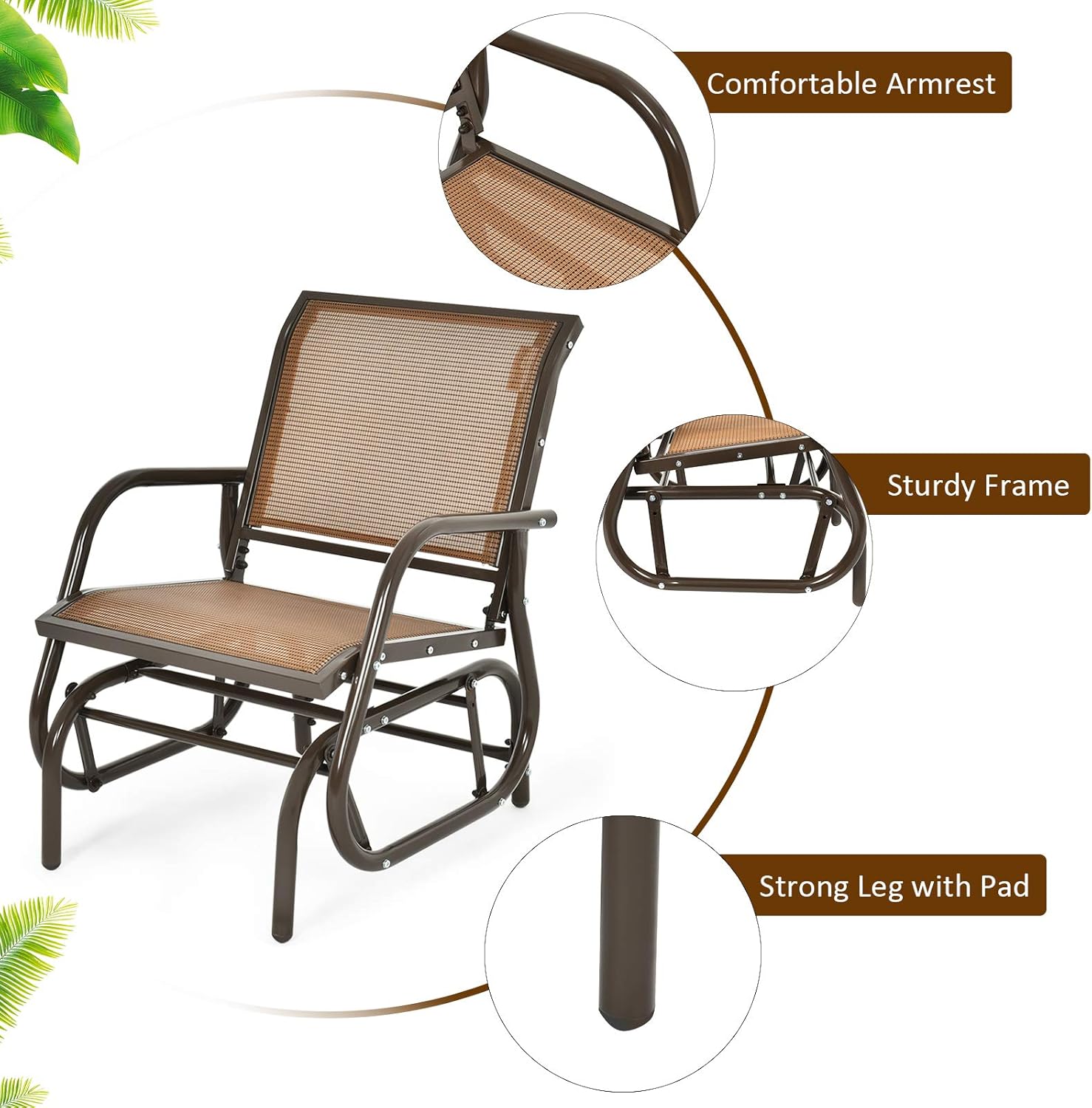 CASART Outdoor Glider Chair, Garden Swing Chair with Sturdy Steel Frame, Single Seat Glider Rocking Chair for Patio, Backyard and Poolside (Brown)