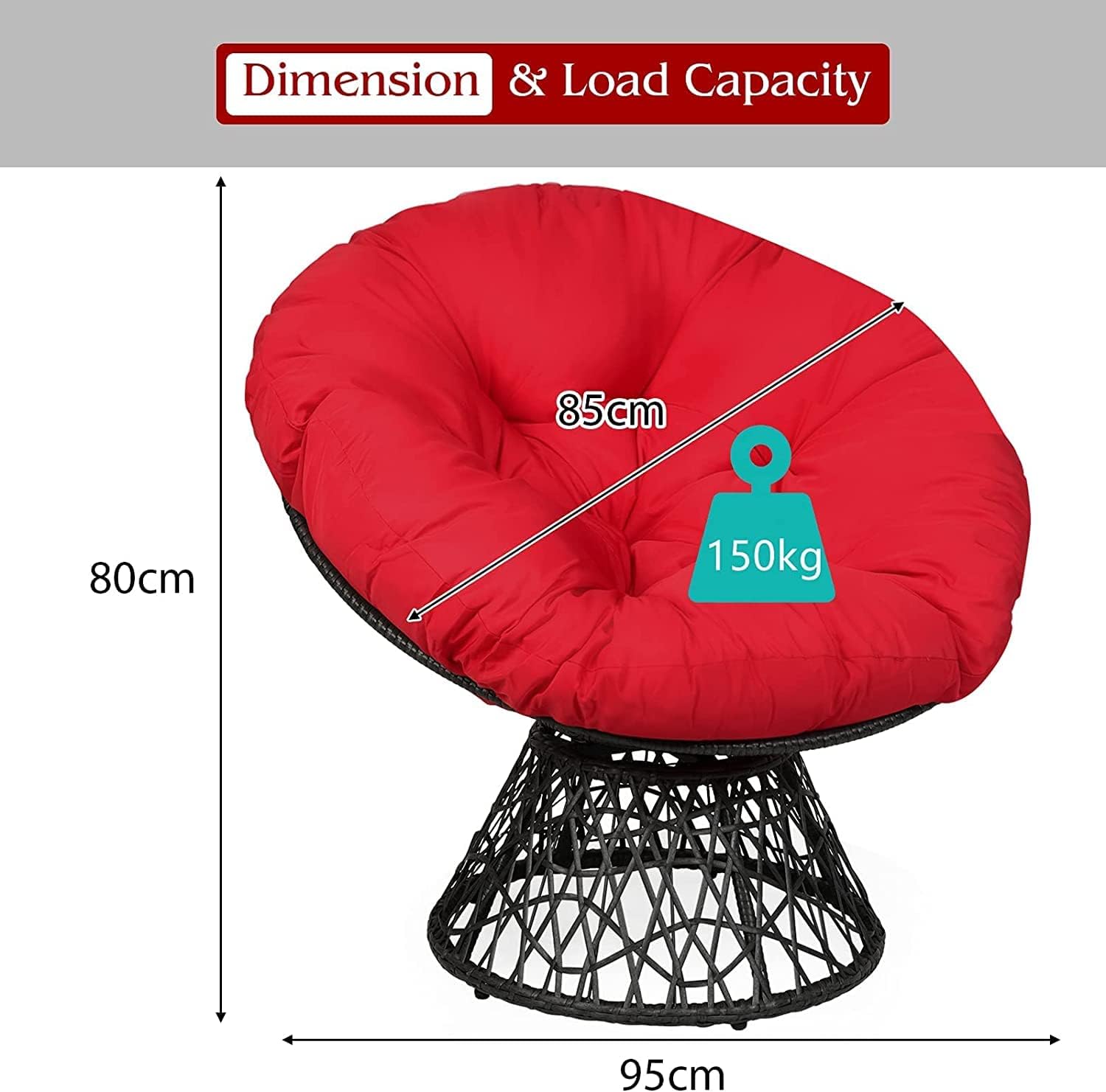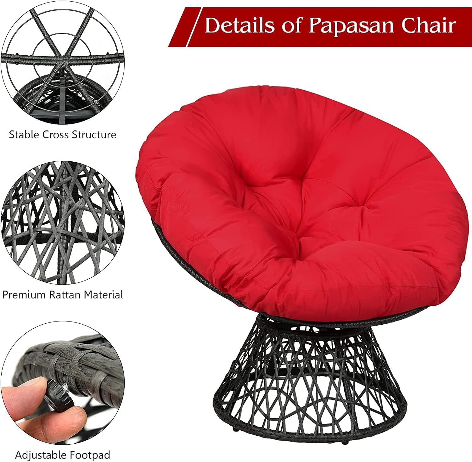 ❤WIDE RANGE OF APPLICATIONS: This bowl-shaped seat is a wicker chair, which is weather resistant and perfect for outdoor use. Of course, thanks to unique and stylish design, this rattan papasan chair is also suitable for indoor use and is a perfect decoration for balconies, gardens, living rooms, etc.