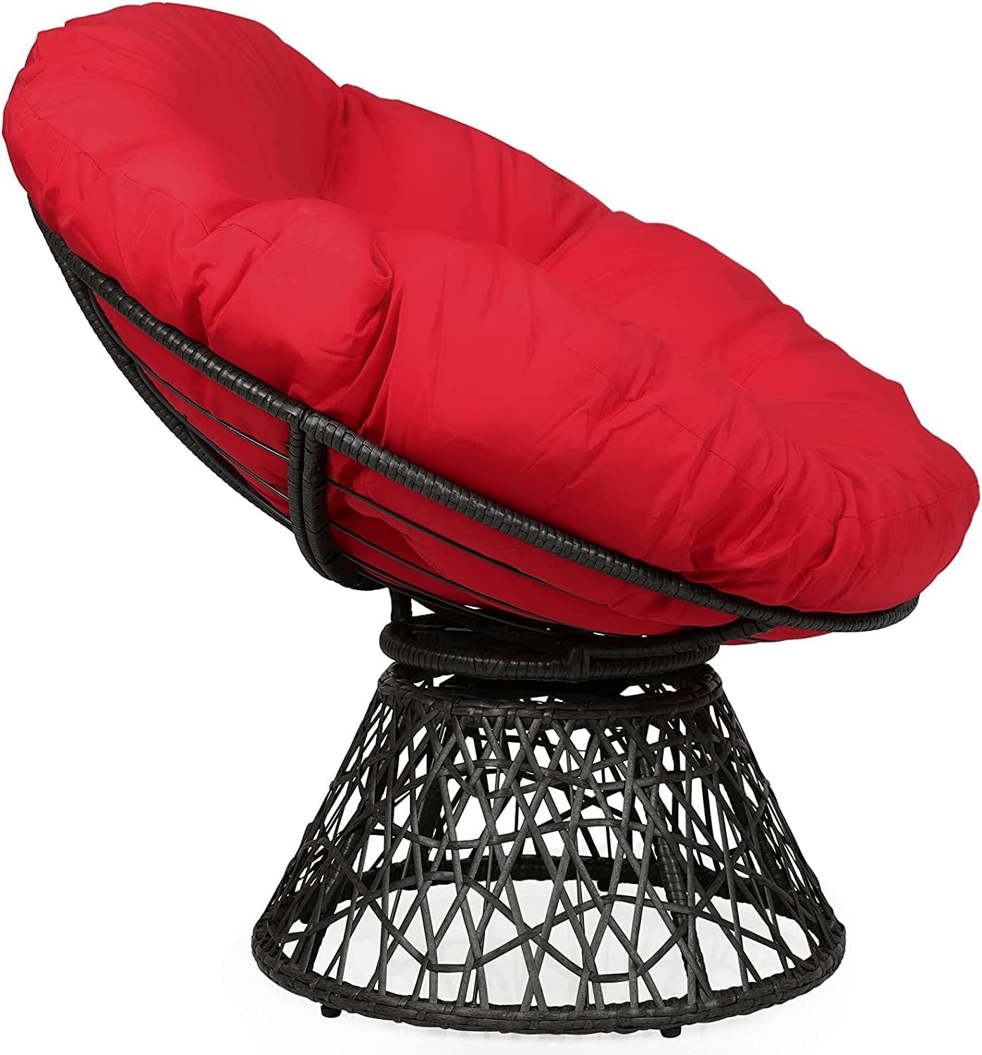 RELAX4LIFE Rattan Papasan Chair, 360 ° Swivel Egg Recliner Chair with Soft Cushion, Indoor Outdoor Rocking Moon Lounger Chair for Living Room Garden Balcony Patio (Red)