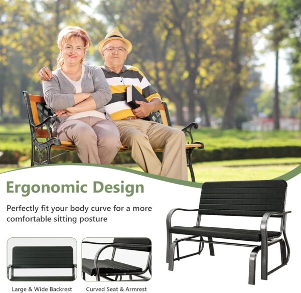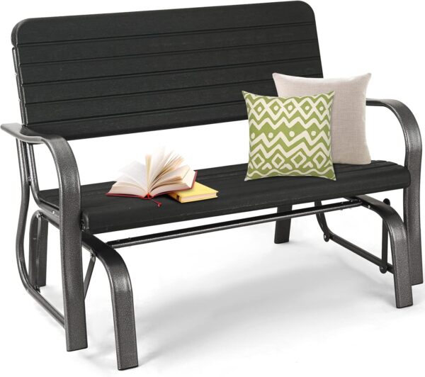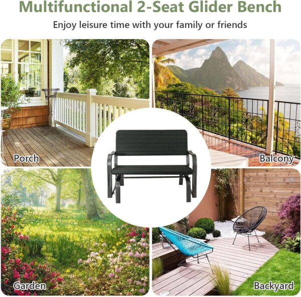 Tangkula Outdoor Glider Bench, Porch Glider Loveseat Swing Bench with w/Steel Frame, 2-Seat Rocking Chair for Porch, Garden, Backyard, Lawn (Black)