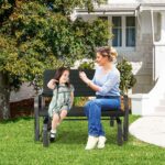 Made of all-weather HDPE material, this outdoor glider bench is built to last. Moreover, the rustproof steel frame with power coated supports the whole bench firmly. What’s more, the high back, large sitting area, ergonomic backrest and curved armrests are designed for a comfortable sitting experience. The 2-person rocking chair is smooth and quiet as for rocking, letting you sit on it cozily. Furthermore, the specific user’s manual helps to assemble and the smooth surface is easy to clean.