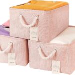 Customers find the baskets well-made and sturdy. They like the faux leather handles that don’t feel cheap. The baskets are useful and space-saving, perfect for hanging up in open spaces.