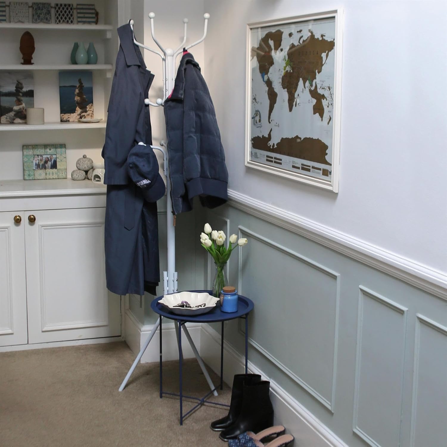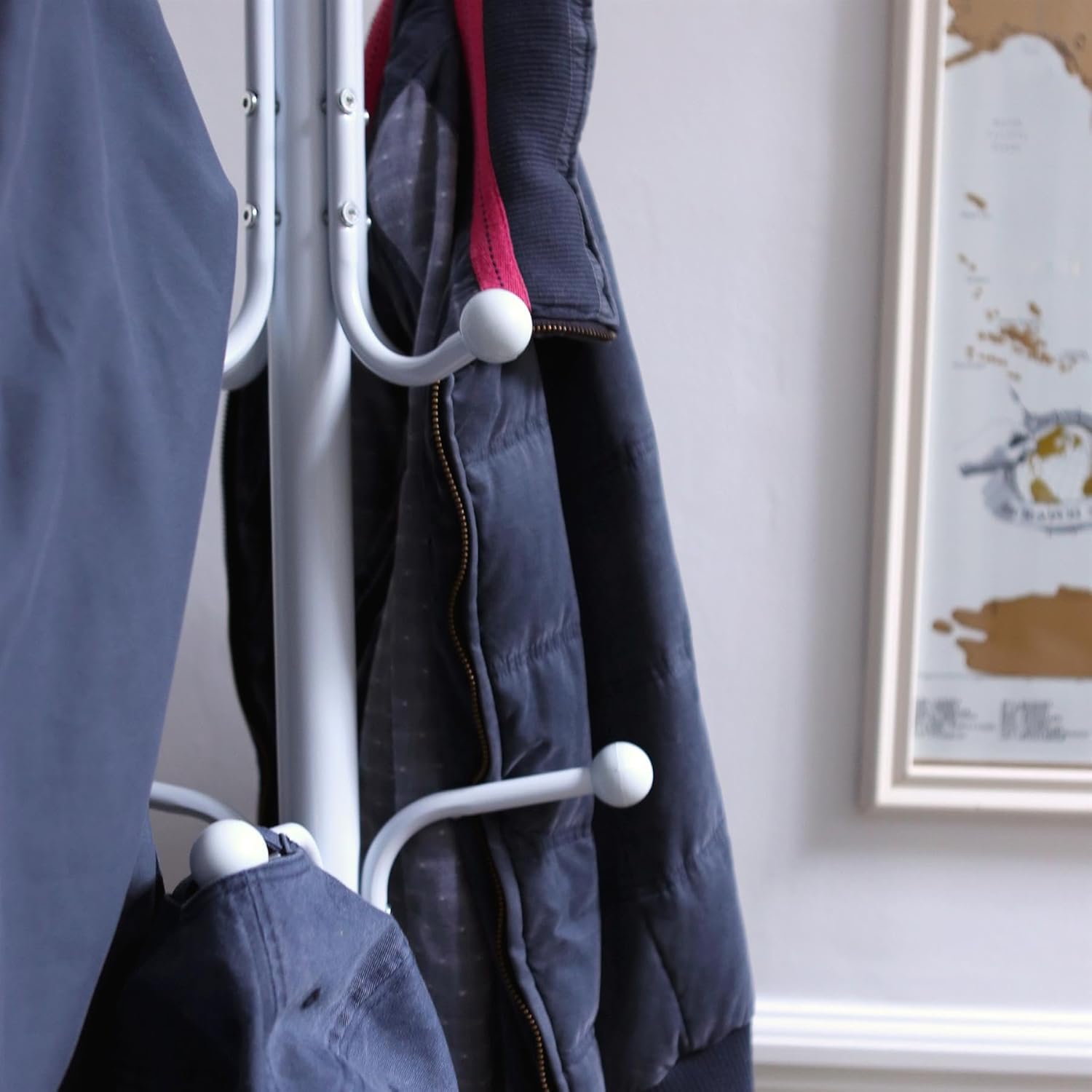 Harbour Housewares 1x White Free-Standing Steel Coat Rack – Multi-Hook Hallway Hall Hat Bag Jacket Hanger Storage Tree Stand Unit