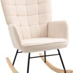 HOMCOM Wingback Rocking Chair with Wooden Base, Fleece Glider Rocker for Nursing, Modern Armchair - Beige Original price was: £125.99.Current price is: £119.99.