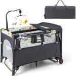 Ansley&HosHo Baby Changing Table Foldable with Unit Storage Bags, Mobile Infant Newborn Diaper Care Station Table Massage Table with Wheels Space-Saving (Grey)