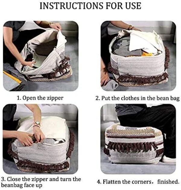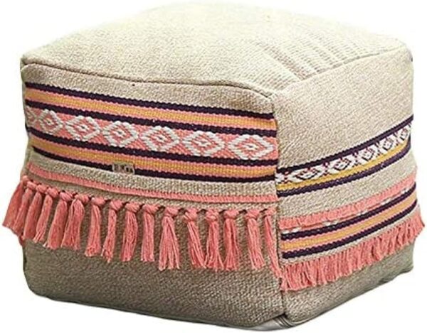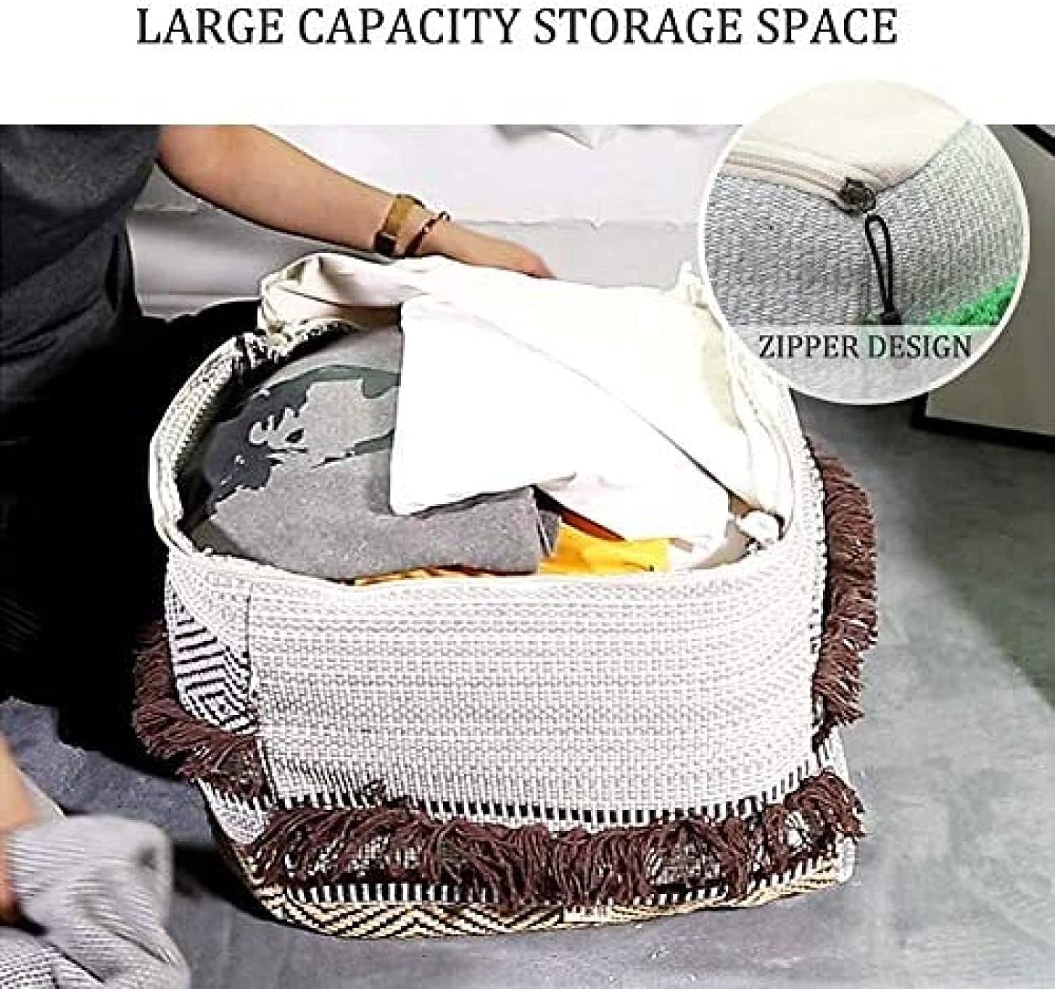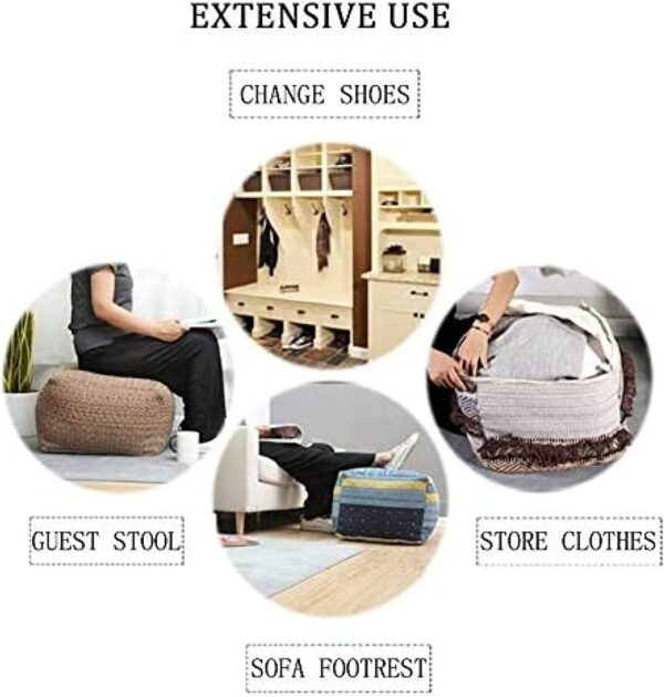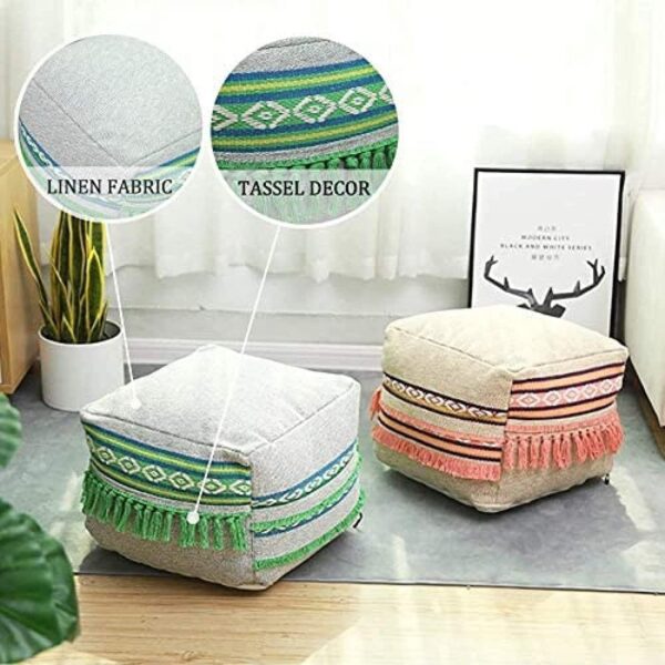 OLOTU Breathable and Wear-resistant Foot Stool Hand Washable Linen Storage Ottomans Floor Cushion with Tassel Indoor Foot Rest