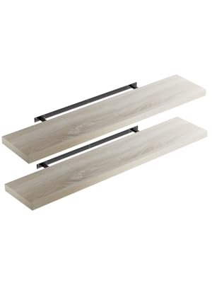 Floating effect: The supplied wall mount disappears completely inside the shelf. Smart: Its classic design gives any room a modern touch. Load capacity: Our floating wall shelves made from robust MDF material (E1) have a height of 3.8cm and a capacity of 15kg. Easily place books on the shelf without any problems – thanks to its high load capacity.Many design possibilities: You can also combine several wall shelves in different sizes and colours to one long shelf space.
