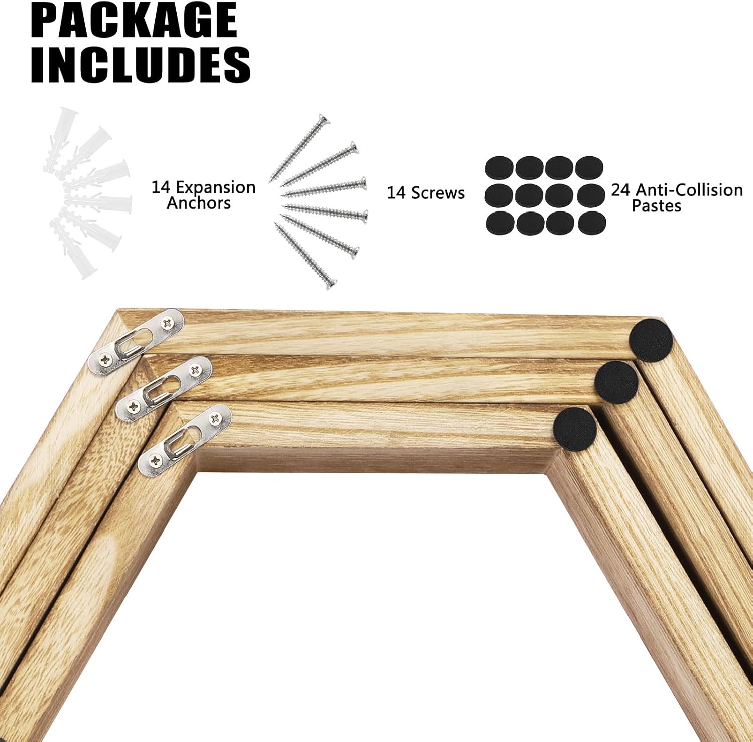 【Free Combination and DIY】You can hang the collage style together or use it separately and flexibly change the layout of different hexagon sizes. And give the walls more dimension. You can sand and re-dye the rustic hexagonal shelves for wall decor. And use your favorite photos, small potted plants, succulents, scented candles, trophies, decorations and books to design a wall collage of your house.