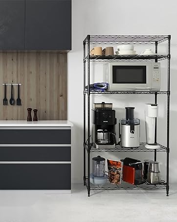【Adjustable Height】: Enjoy a completely customizable metal shelving unit. The build allows for height adjustments – giving you the freedom to adjust accordingly to your needs.