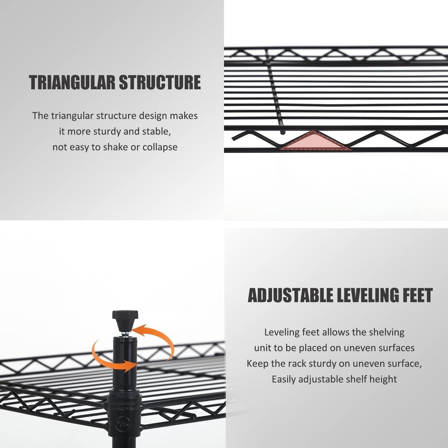 【Stable with Solid Material】: Made from steel and the unique triangular mechanical design creates an anti-rust wire shelving unit that is tighter, stronger, and more durable than traditional racks.