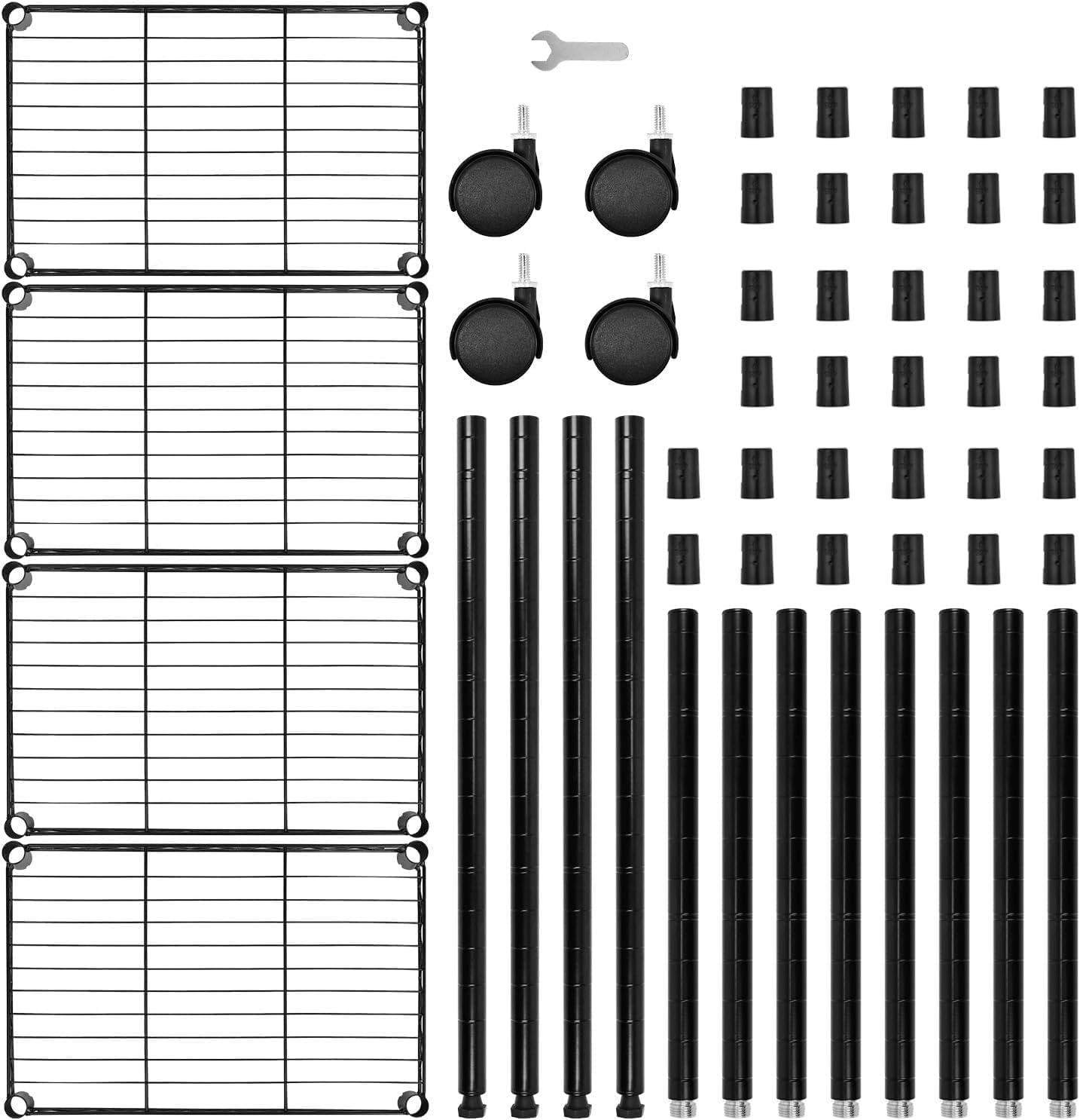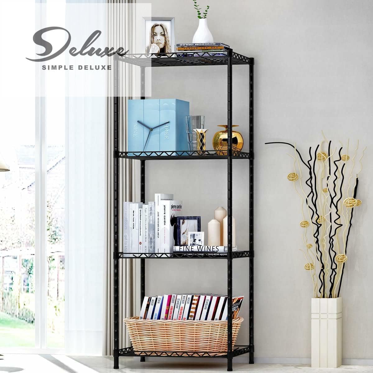 Simple Deluxe 4-Shelf Shelving Unit, Metal storage wire shelf rack with wheels, Height adjustable Storage Organiser For Kitchen, Bathroom,Office or Other Home Spaces,45W x 30Dx 110Hcm,Black