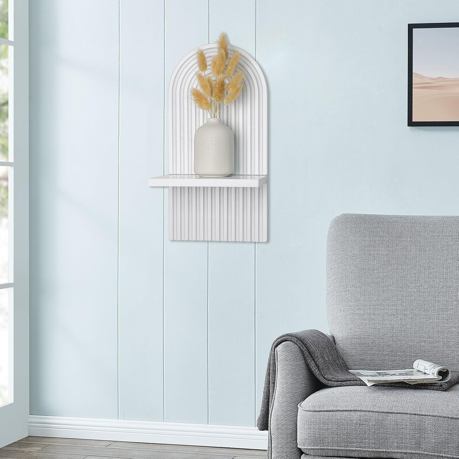 Retro Arch Design: The wood shelves for wall decor adopts an arch style design, featuring multiple layers of rainbow patterns, a perfect combination of retro and modern art, providing you with a medieval decorative atmosphere and creating a fashionable and minimalist spatial atmosphere for your home.