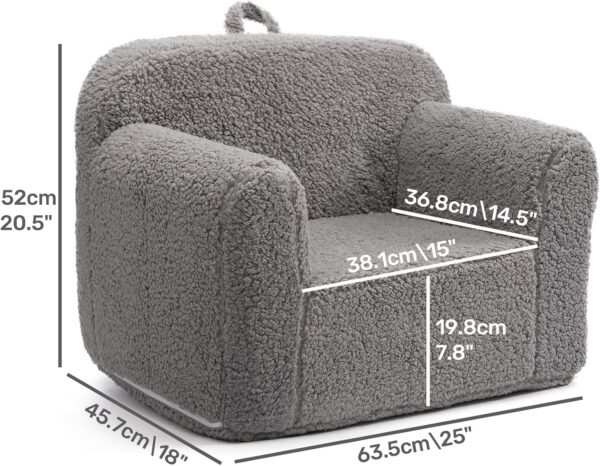 BEJOY Kids Sofa Ultra-Soft Snuggle Foam Filled Chair, Single Cuddly Sherpa Reading Couch for Boys and Girls, Grey
