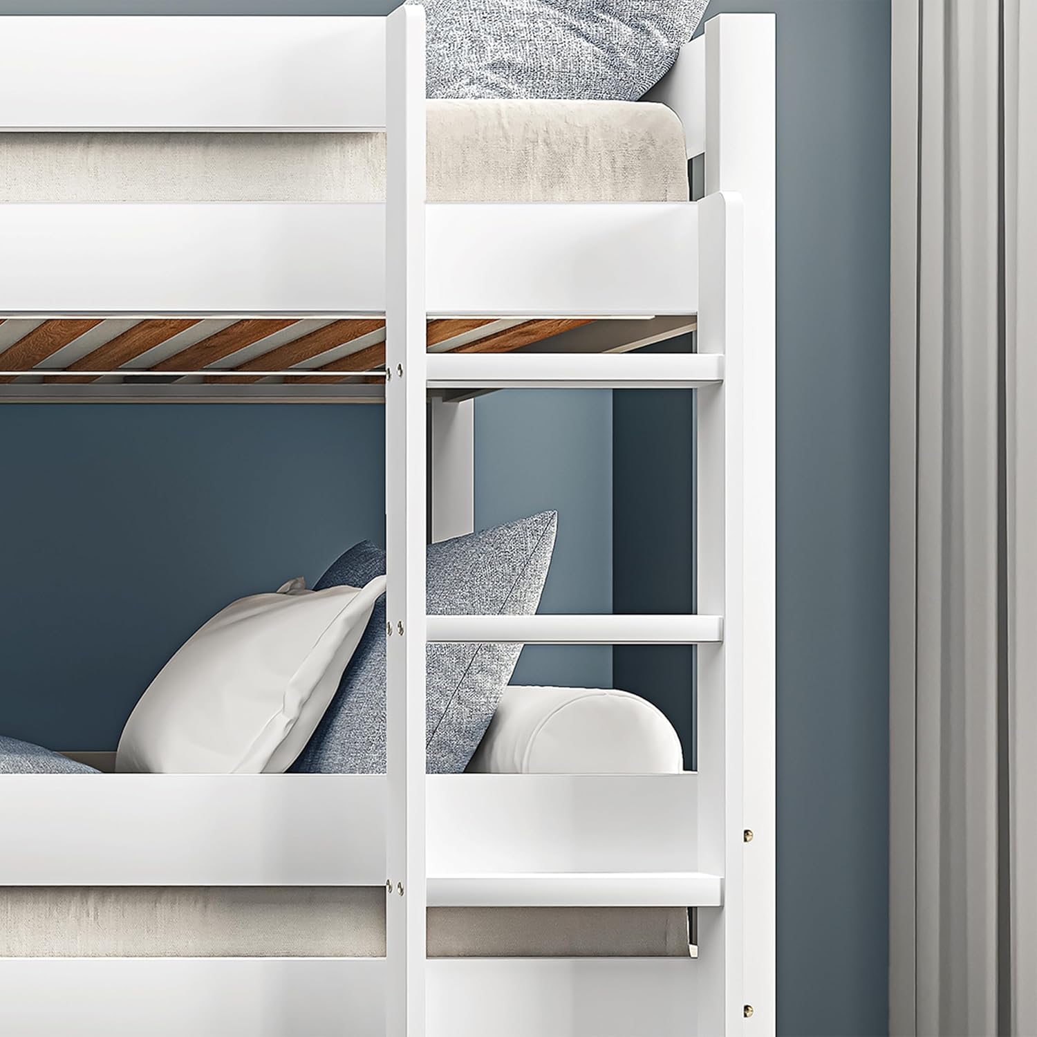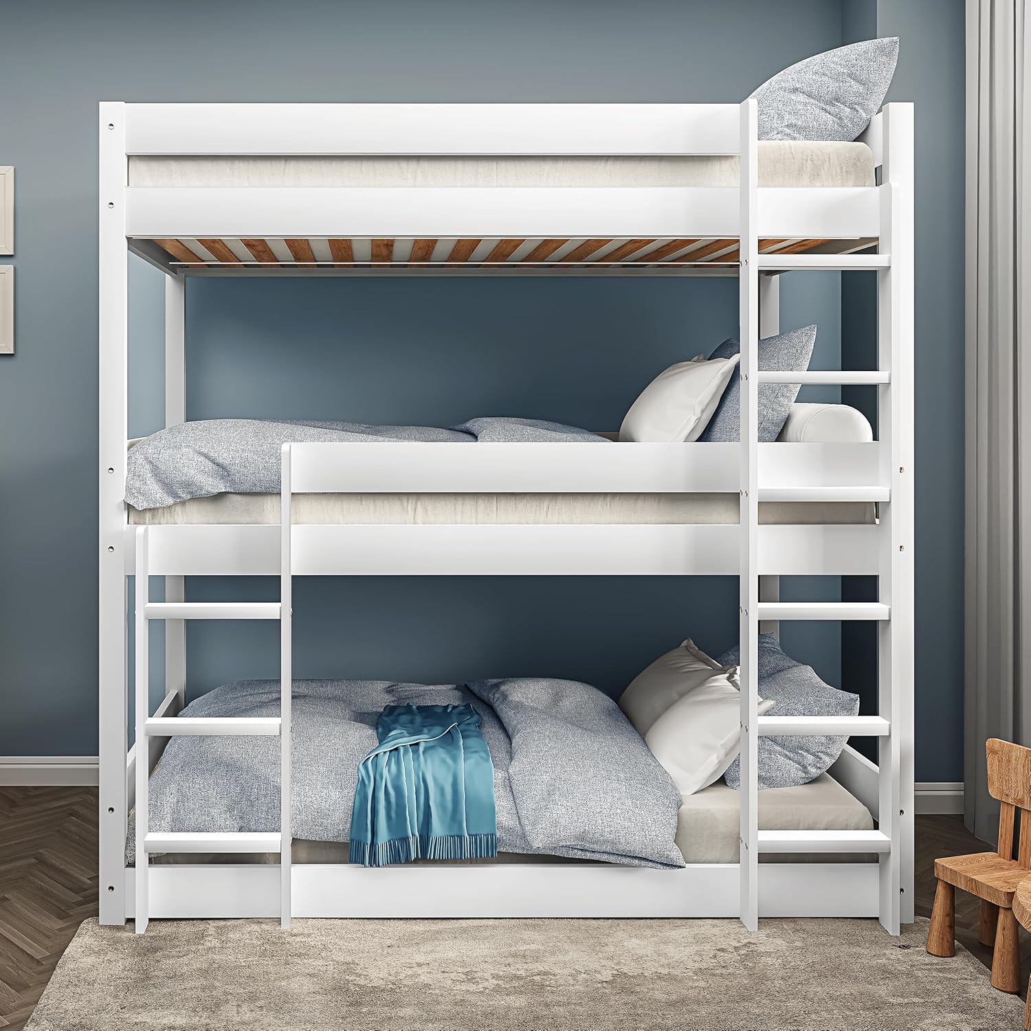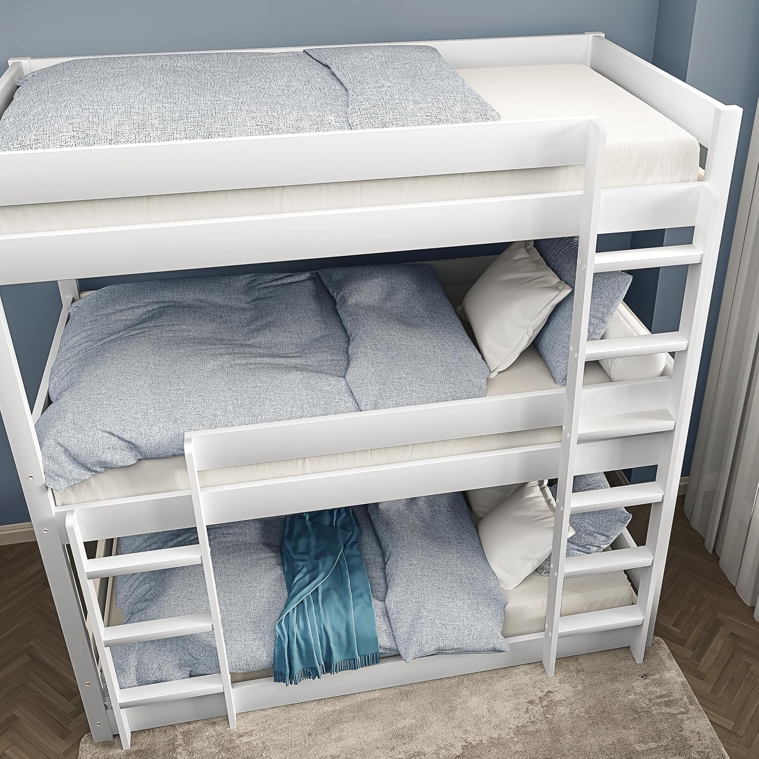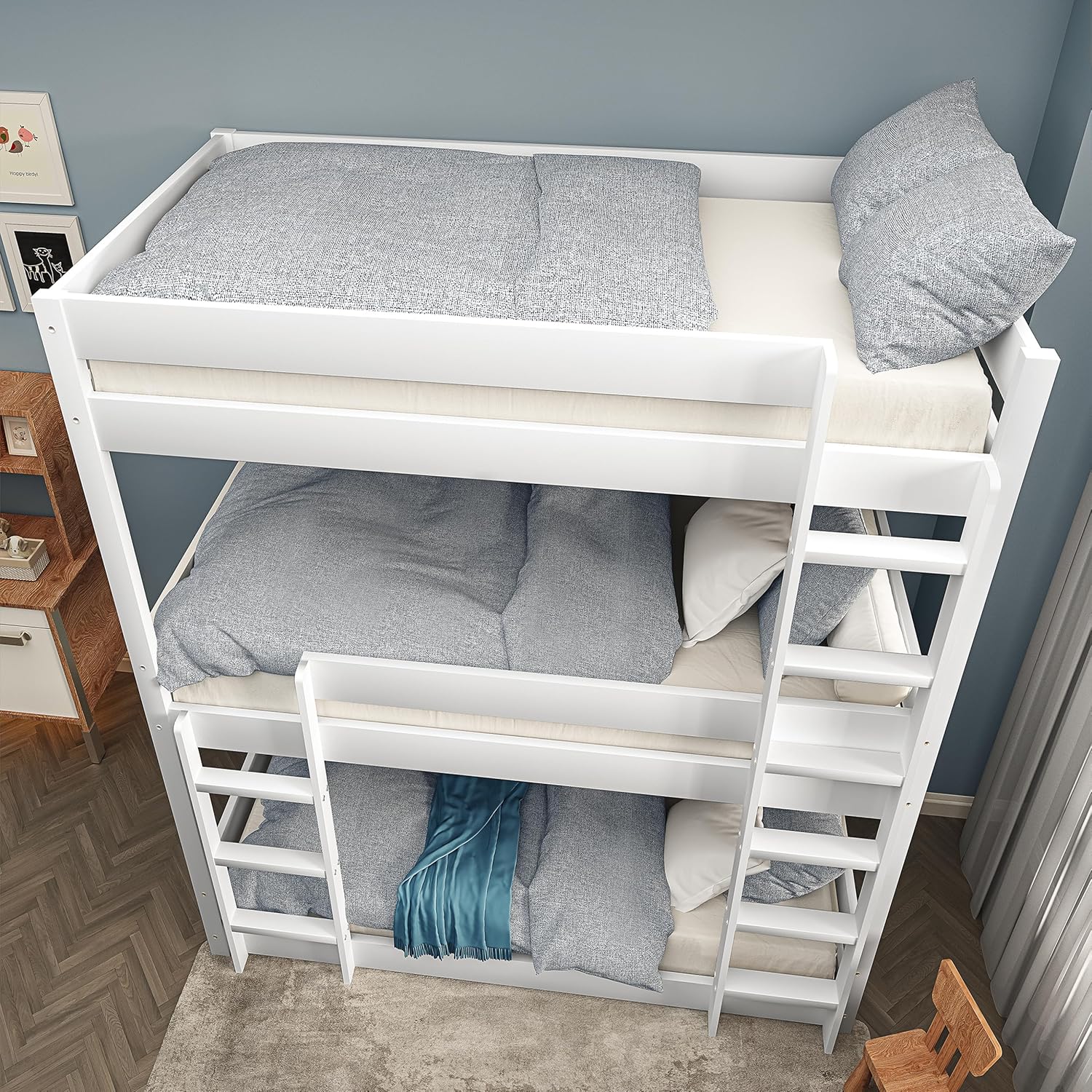 Blisswood Bunk Bed, 3ft Triple Bunk Bed With Ladder High Sleeper Kids Bed, Solid Pine Wood Kids Children Bed frame For Home (White, L197 x W96 x H198 cm)