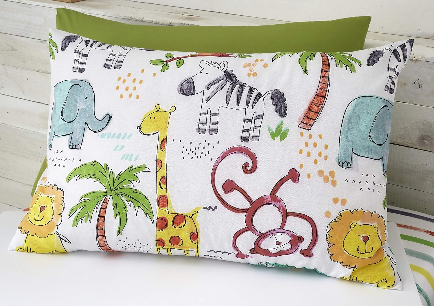 Happy Linen Company Kids Boys Girls Jungle Safari Animals Lion King Teal Reversible Toddler Cot Bed Bedding Duvet Cover Set