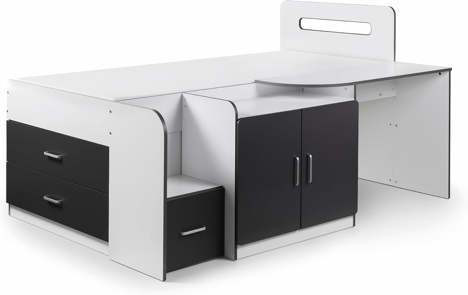 Customers find the bed frame well-designed and spacious, with a nice desk area. They appreciate its sturdiness and practicality, finding it space-saving and worth the effort. However, some customers have differing views on how easy it is to assemble.
